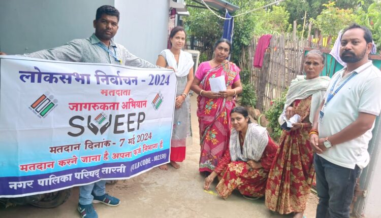 मतदान करने के लिए आग्रह किया जा रहा है ,और घर-घर पहुंच कर पीला चावल देकर मतदान करने निमंत्रण दिया जा रहा है,नगर पालिका के सहायक नोडल अधिकारी रंजीत डोंगरे सारणी क्षेत्र के युवाओं को मतदान करने के लिए प्रेरित कर रहे हैं, बाल विकास के परियोजना प्रभारी संगीता धुर्वे और सुपरवाइजर रश्मि अकोदिया अन्य आंगनबाड़ी के कार्यकर्ता एवं सहायक कर्मचारी और नगर पालिका के कर्मचारी कामदेव सोनी,कीर्ति नायक,अनिल