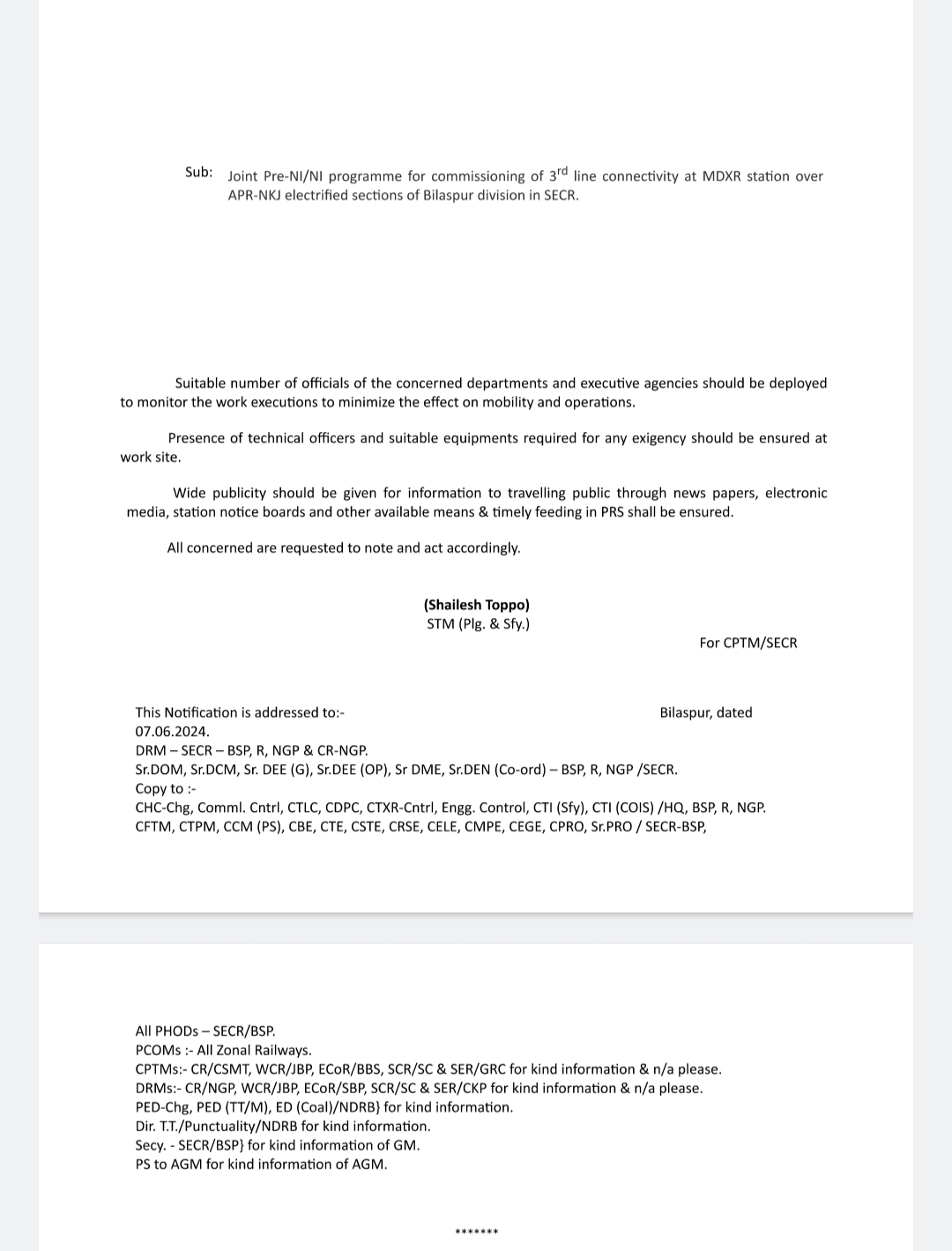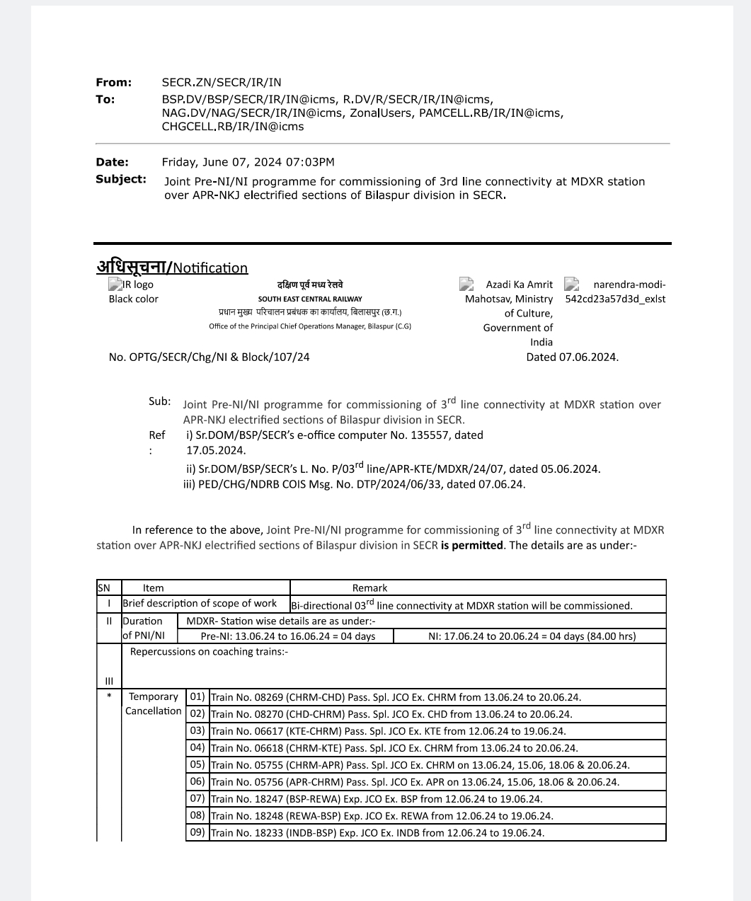 *फिर एक बार 12 जून से 20 जून तक कई ट्रेन निरस्त, सूची देखें*