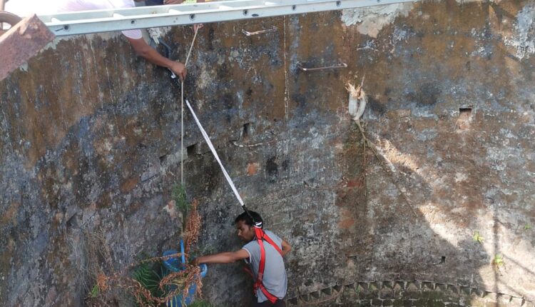 मुख्य नगर पालिका अधिकारी सी.के. मेश्राम ने बताया कि जल गंगा संवर्धन अभियान के तहत नगर पालिका द्वारा जलस्त्रोतों के संवर्धन एवं पुनर्जीवन हेतु अभियान 30 जून तक सतत चलाया जा रहा है। गुरूवार 20 जून को वार्ड क्रमांक 01 के सार्वजनिक कुएं की श्रमदान कर सफाई की गई। कुएं के भीतर काफी संख्या में झाड़ियां उग आई थी। नपा के श्रमदानी कर्मचारियों ने सेफ्टी बेल्ट की मदद से कुएं के भीतर उतरकर झाड़ियों को साफ किया।