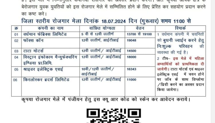 जिला स्तरीय रोजगार मेला 18 को