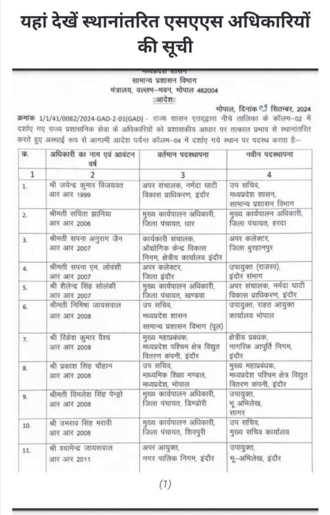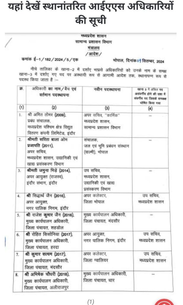 Transfer : इन अधिकारियों के हुए ट्रांसफर