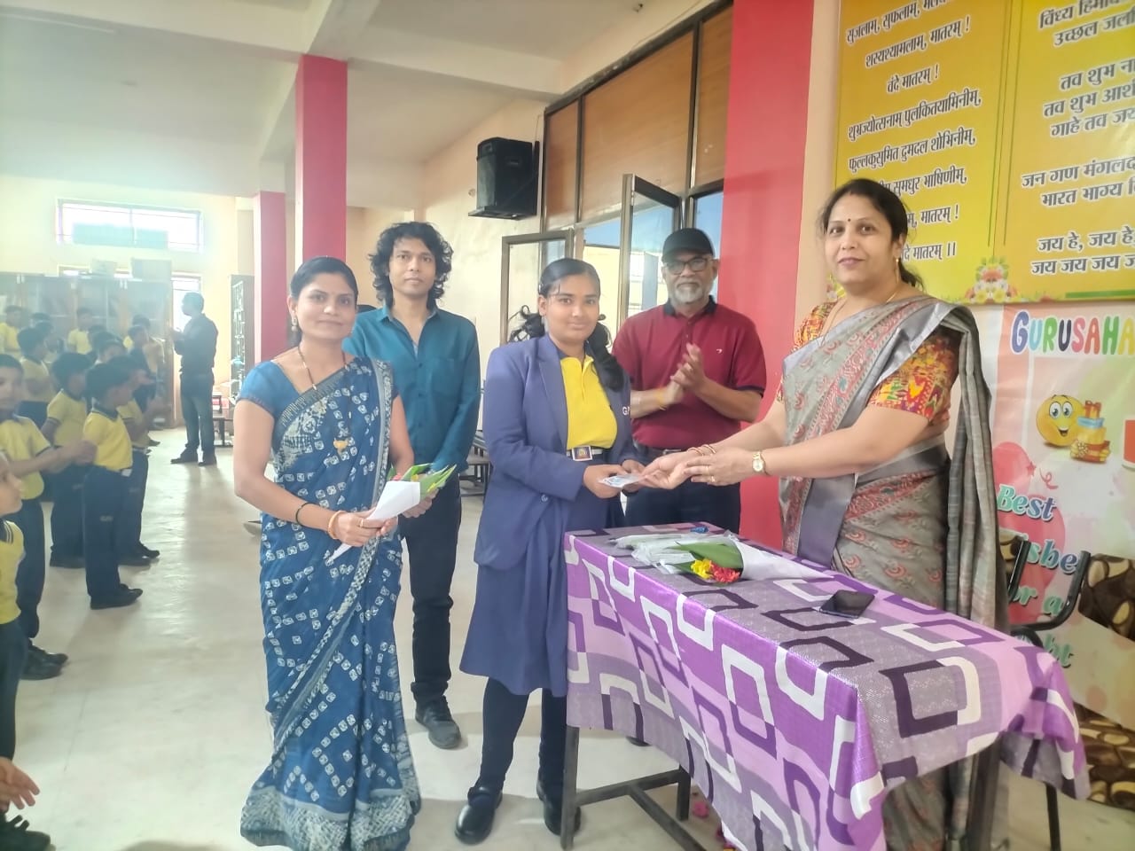 *हिन्दी दिवस के अवसर पर गुरुसाहब पब्लिक स्कूल मे विशेष कार्यक्रम आयोजित हुए. आज का दिन विद्यालय परिसर के लिए पूरी तरह से हिन्दी दिवस घोषित किया गया था. सुबह की प्रार्थना सभा मे बच्चों ने सभी निर्देशन के अलावा नित्य प्रतिज्ञा ; सुविचार; सामान्य ज्ञान प्रश्नोत्तरी आदि हिन्दी भाषा मे ही आयोजित की. साहित्यिक सभा मे छात्रा दिव्यांशी उइके ने हिन्दी दिवस का परिचय दिया. सुनिधि मालवीय ; नैना सोनारे ; पलक यादव ; कृतिका आर्य ; उदिता आर्य ; निहारिका घंगारे ने हिन्दी भाषा पर सुंदर कविताऐं सुनाई. विद्यालय की हिन्दी शिक्षिका दिशिका घंगारे; ज्योति गावंडे; सोनू दवंडे ; शिवानी आर्य एवं नीलम साहू ने बच्चों को मातृभाषा हिन्दी का इतिहास; महत्व; विशेषताऐं एवं प्रासंगिकता पर प्रेरक उद्बोधन किया. इस दौरान