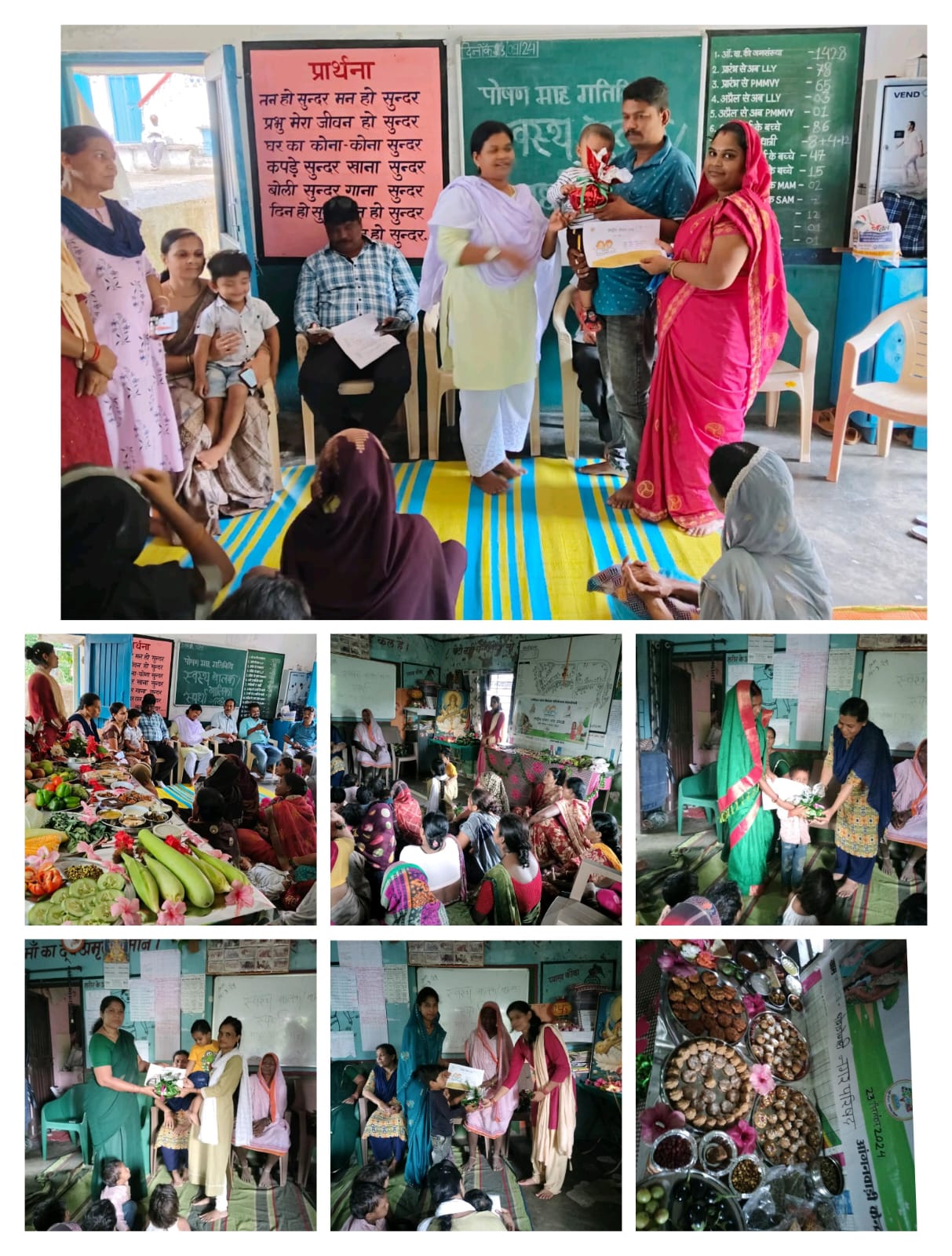 जिनके बच्चे अपेक्षाकृत कमजोर है । ।। कार्यक्रम में CDPO शशि प्रभा इक्का मैडम द्वारा स्वस्थ बच्चों को पुरस्कृत किया गया तथा मोटे अनाजों पर भी चर्चा की गई मक्का ,ज्वार ,बाजरा , कोदो,कुटकी, सावा, इन अनाजों को हमारे खाने में शामिल किया जाय तथा खाने में तिरंगा भोजन करना है कार्यक्रम में मोटे अनाजों से पोषण प्रदर्शनी का भी आयोजन किया गया कार्यक्रम में शामिल पर्यवेक्षक अनामिका छारी, महेंद्र प्रजापति बाबूजी ANM लता पेंड्रा , मोहित चोकसे , पार्षद कविता महाले , आंगनवाड़ी कार्यकर्ता कंचन पांडे, विमल रावल ,संतोषी उबनारे, रंगो धुर्वे ,विमला सलाम शमशाद बेगम ,सत्यभामा गुप्ता, लीलावती धुर्वे ,मीणा गर्भवती माता धात्री माता अन्य हितग्राही शामिल रहे