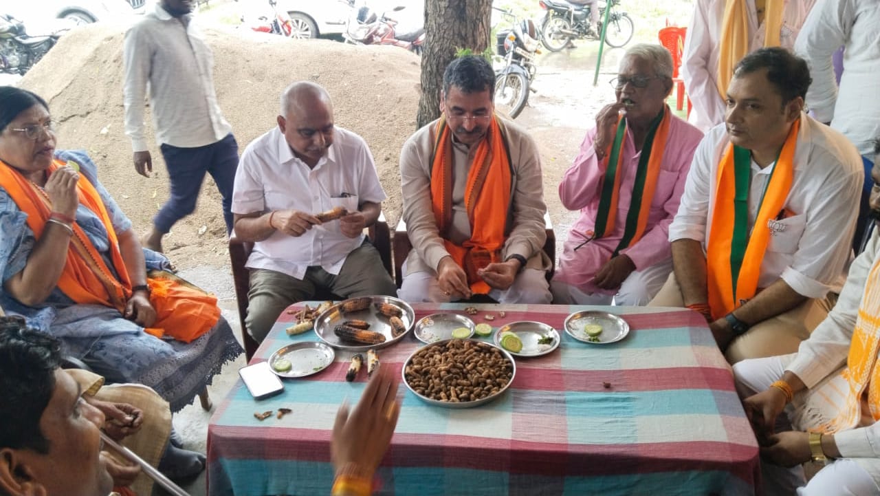 बुधवार सुबह शाहपुर मंडल के पाठाई ग्राम पहुंचे भाजपा प्रदेश महामंत्री संगठन हितानंद शर्मा जी ने गांव में ही एक आदिवासी कार्यकर्ता के घर भुट्टे और देसी ककड़ी,मक्के के बड़े,और फल्ली खाए । श्री हितानंद शर्मा, विधायक हेमंत खंडेलवाल और श्रीमती गंगाबाई उईके और पूर्व विधायक रामजीलाल उइके,मंगल सिंग धुर्वे के साथ भाजपा के शक्ति केंद्र प्रभारी निर्मल उइके और कमल उइके के घर पहुंचे। यहां श्री उइके ने उनका स्वागत किया। और श्री शर्मा सहित सभी नेताओं को अपनी बाड़ी में उगाए गए भुट्टे खाने के लिए परोसे। श्री हितानंद शर्मा ने बड़े चाव से भुट्टे खाए और निर्मल उइके सहित उनके परिवार को धन्यवाद किया।