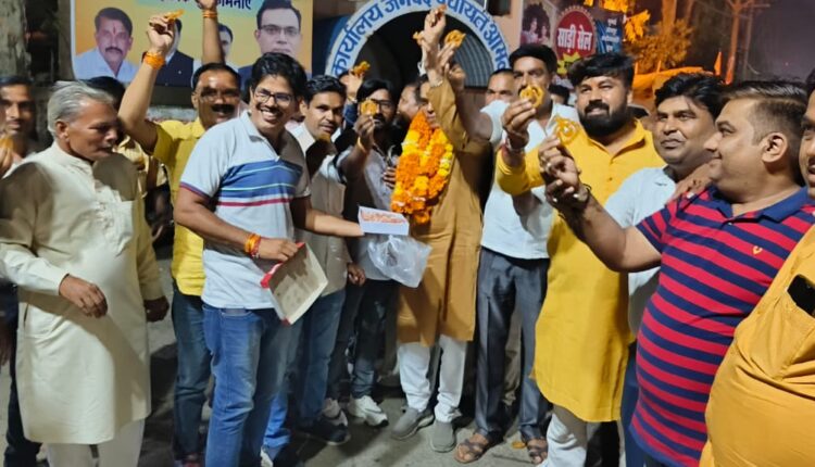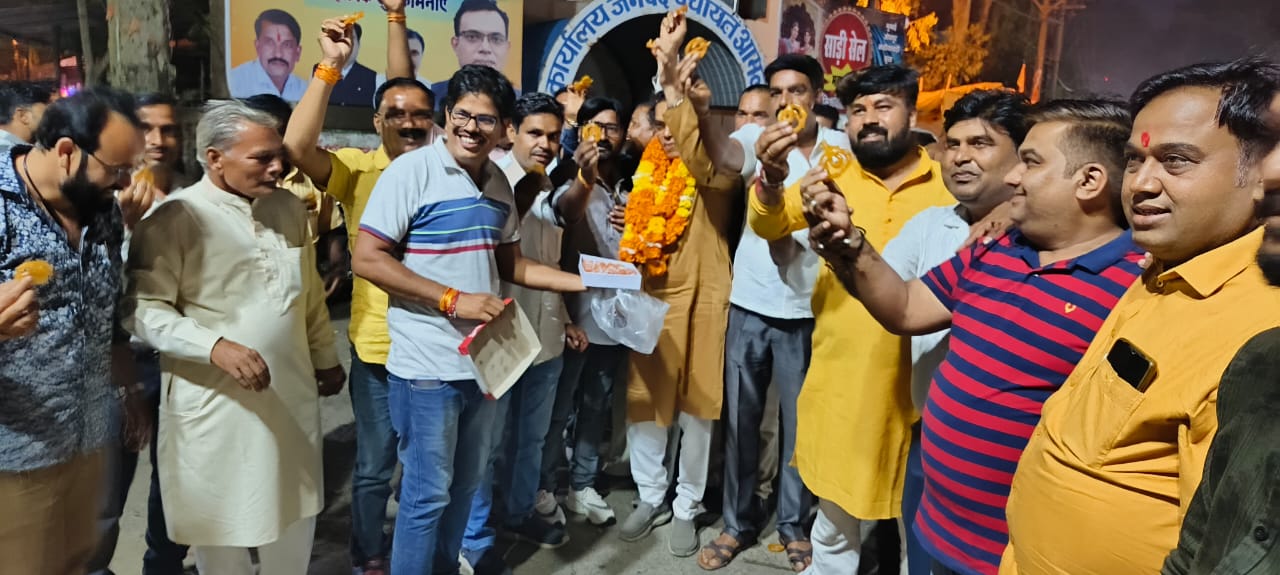 इस अवसर पर विधायक डॉ योगेश पंडाग्रे ने कार्यकर्ता पदाधिकारियों को जलेबी लड्डू खिला कर जीत की बधाई दी।