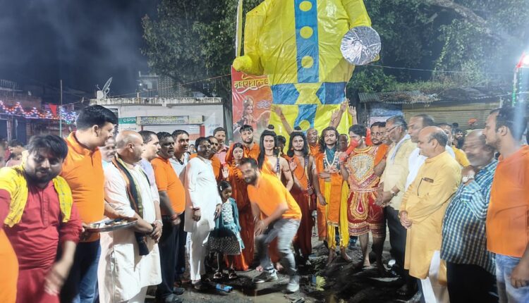 रावण दहन के पहले माँ दुर्गा और श्री राम दरबार की झांकी पूरे नगर भृमण के लिए निकली वापस झांकी नगर के दुर्गा चौक में आने के बाद ढोल नगाड़ों और आतिशबाजी के साथ रावण दहन किया गया