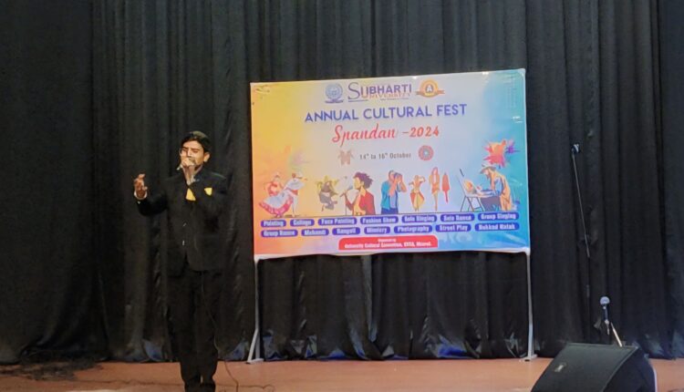 स्वामी विवेकानंद सुभारती विश्वविद्यालय, मेरठ – वार्षिक सांस्कृतिक महोत्सव स्पंदन 2024 का आयोजन 14 अक्टूबर से 16 अक्टूबर तक किया जा रहा है। इस महोत्सव में विश्वविद्यालय के विभिन्न विभागों और छात्रों ने बढ़-चढ़कर हिस्सा लिया। 14 अक्टूबर को सोलो सिंगिंग सेमीफाइनल आयोजित किया गया, जिसमें कुल 40 छात्रों ने भाग लिया। सेमीफाइनल के बाद, फाइनल के लिए 12 छात्रों का चयन किया गया, जिसमें डॉ. नवीन वागद्रे ने भी अपनी जगह बनाई और फाइनल में तीसरा स्थान प्राप्त किया।