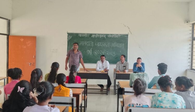 मध्य प्रदेश चुनाव आयोग एवं जिला निर्वाचन अधिकारी बैतूल के निर्देशानुसार मध्य प्रदेश में नवीन मतदाताओं का मतदाता सूची में नाम जुड़वाने हेतु वार्षिक संक्षिप्त पुनरीक्षण 2025 के प्रचार प्रचार का कार्य प्रगति पर है इसी दिशा में शासकीय महाविद्यालय घोड़ाडोंगरी में आज महाविद्यालय के छात्रों का मतदाता सूची में नाम जुड़वाने एवम वार्षिक संक्षिप्त पुनरीक्षण 2025 के प्रचार प्रसार के लिए महाविद्यालय के प्राचार्य के संरक्षण में