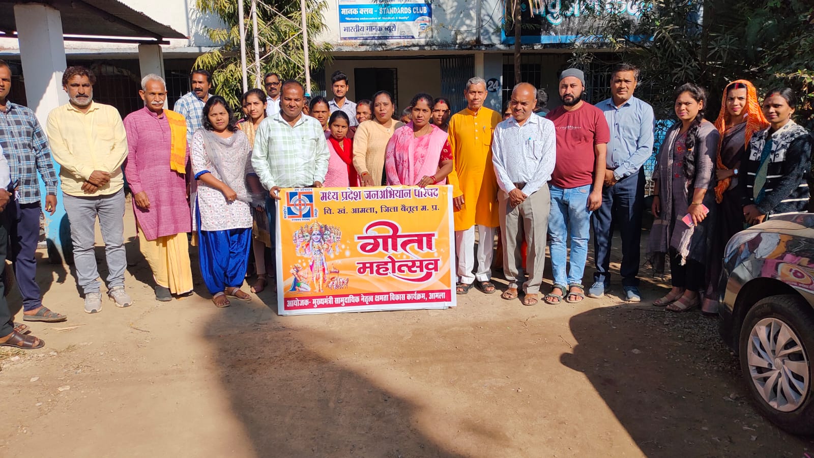 आमला में यह कार्यक्रम अध्ययन केंद्र सी एम राइस शासकीय उच्चतर माध्यमिक विद्यालय आमला में आयोजित मुख्यमंत्री सामुदायिक नेतृत्व क्षमता विकास कार्यक्रम के अंतर्गत संचालित कक्षा में सम्पन्न हुई श्री धामोडे जी ने धर्म की व्याख्या करते हुए मनुष्य जीवन में धर्म की महत्ता बताई। आपने श्री कृष्ण द्वारा अर्जुन को दिए गए उपदेशों के माध्यम से मानव जीवन हेतु उपयोगी बातें सिखाई। आपने जन अभियान परिषद द्वारा समाज हित, राष्ट्रहित तथा धर्म जागरण के क्षेत्र में किए जा रहे कार्यों की सराहना करते हुए हर संभव सहयोग एवं मार्गदर्शन देते रहने की बात कही। श्री अरविंद माथनकर व विकासखंड समन्वयक ने इस अभियान की सार्थकता बताते हुए गांव-गांव गीता के संदेश को प्रसारित करने की कार्य योजना बताई। गीता के प्रमुख संदेशों के माध्यम से युवाओं को प्रेरित किया। श्री ठाकुर दास जी पवार ने गीता के संदेश को जीवन में अमल करके मानव जीवन को सफल बनाने पर मार्गदर्शन दिया। अरविंद माथनकर बताया कि परिषद की सभी नवांकुर
