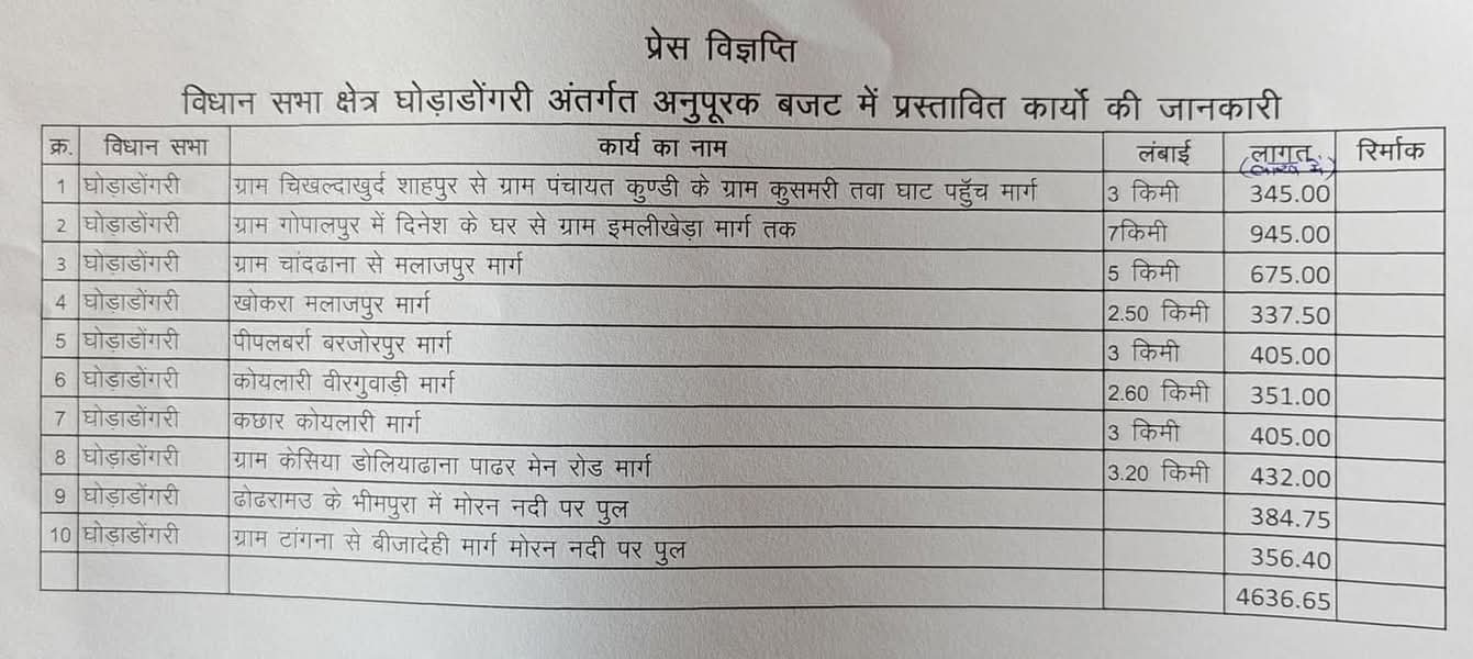 विधायक श्रीमती गंगा बाई उईके के अथक प्रयासों से 8 सड़कों और 2 पुल निर्माण को अनुपूरक बजट में मिली स्वीकृति