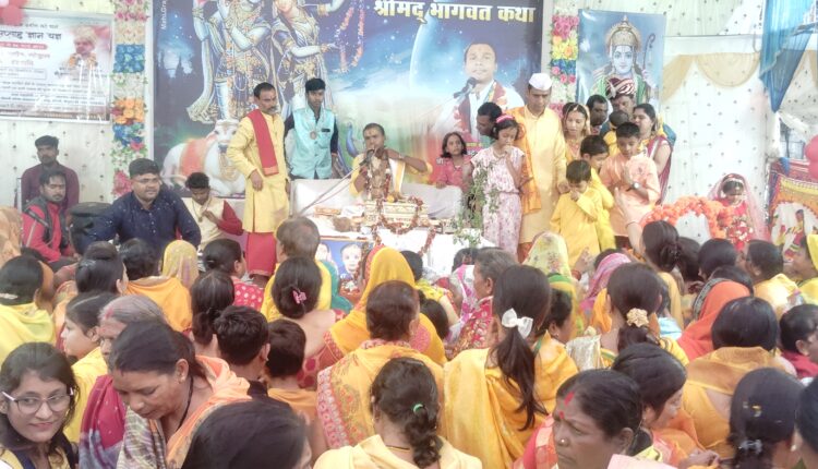 सती माता की कथा सुनाते हुए कहा कि जब भी गलत करते हैं तो परमेश्वर मन में घंटी बजाते हैं की संभल जाओ। बिगड़ते को लोग बिगाड़ने में लगे रहते हैं ।संपूर्ण रिश्ते में मां का रिश्ता ऐसा होता है जिसका स्थान कोई नहीं ले सकता । संतान का गलत नहीं सोच सकती। पुत्र कुपुत्र हो सकता है माता कुमाता नहीं होती। सती माता के शरीर से 52 शक्तिपीठ किस तरह निर्मित हुए उसकी जानकारी दी । जब हाथी ने तिल भर सूंड पानी में डूबने से बची तब प्रभु को पुकारा और नारायण ने आकर उसे बचाया। समुद्र मंथन में अमृत निकला तो देवता और असुर पीने के लिए लड़ने लगे । बाली से वामन रूप में भगवान ने तीन पग जमीन मांगी उसकी भी कथा सुनाई।