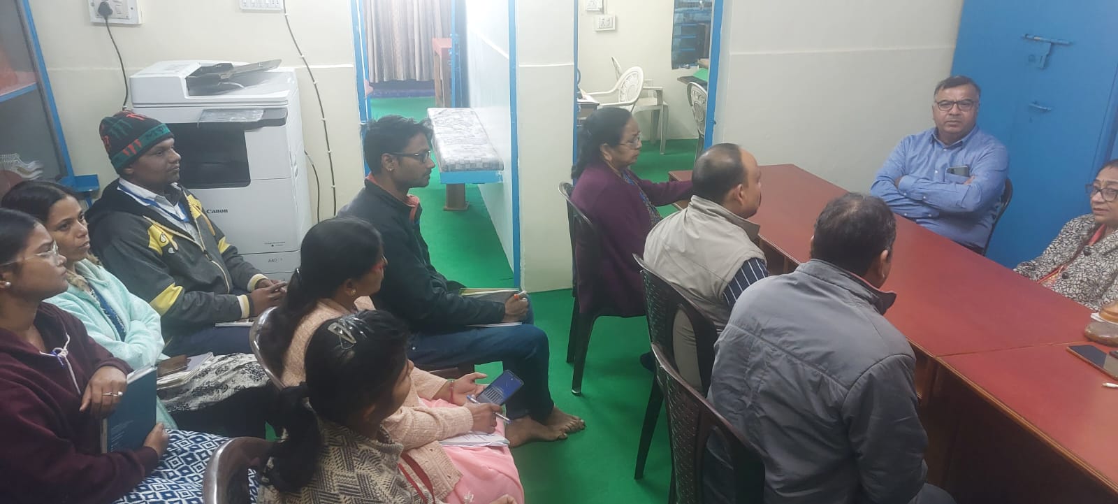 डॉ. शैलेश शाकल्ले, राज्य कार्यक्रम अधिकारी (आशा कार्यक्रम), राष्ट्रीय स्वास्थ्य मिशन भोपाल म.प्र. द्वारा आज दिनांक 10.01.2025 को ग्राम भारती महिला मंडल, शोभापुर कालोनी पाथाखेड़ा का भ्रमण किया गया। डॉ. शैलेश शाकल्ले टी.बी. उन्मूलन कार्यक्रम अंतर्गत 100 दिन निःक्षय अभियान अंतर्गत टी.बी. उन्मूलन कार्यक्रम के प्रभारी के रुप में जिले के भ्रमण पर है। जिसके दौरान उनके द्वारा संस्था कार्यालय का भी औचक भ्रमण किया गया। डॉ. शैलेश शाकल्ले द्वारा संस्था कार्यालय एवं गतिविधियों की प्रशंसा करते हुए कहा गया कि – श्रीमती भारती अग्रवाल के अनुपम प्रयासों से यह संस्था महिला उत्थान तथा विभिन्न आजीविका संबंधी कार्यो में प्रयासरत है। साथ ही संस्था एवं संस्था कर्मचारियों के उज्जवल भविष्य की कामना की गई।
