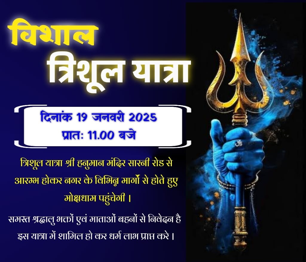 कि सभी श्रद्धालु अनुशासित रूप से शोभायात्रा में अधिक से अधिक संख्या में त्रिशूल यात्रा में शामिल हो पुण्य लाभ अर्जित करें