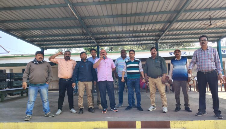 केंद्र सरकार की 4 लेबर कोड ,श्रम कानून मैं बदलाव ,ठेका कर्मचारियों को हाई पॉवर कमेटी का वेतन भुगतान जैसे अन्य मुद्दों को लेकर सीटू, एटक, इंटक ,यूनियन ने माइन पर प्रथम पाली मैं द्वार सभा के माध्यम से जनजागरण अभियान चलाया ।