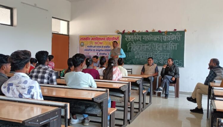 विवेकानंद युवा शक्ति मिशन के संबंध में कार्यक्रमों का आयोजन किया जिसके अंतर्गत स्नातक कला एवं विज्ञान संकाय के छात्रों के लिए अलग-अलग तिथियां में कक्ष क्रमांक 6 में कार्यक्रम का आयोजन किया गया जिसमे महाविद्यालय छात्रों को युवा शक्ति मिशन के