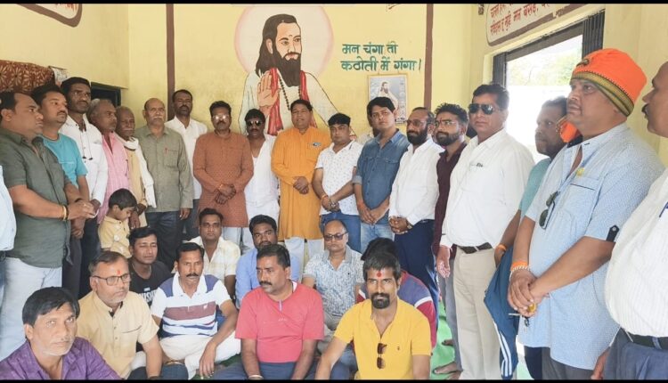 भाजपा अनुसूचित जाति मोर्चा मंडल सारनी के द्वारा पाथाखेड़ा में स्थित संत शिरोमणि गुरु रविदास जी के मंदिर में 12 फरवरी को नगर पालिका अध्यक्ष किशोर बरदे वरिष्ठ भाजपा नेता जी पी सिंह जगदीश आहुजा की अध्यक्षता एवं भाजपा अनुसूचित जाति मोर्चे के मंडल अध्यक्ष योगेश बरडे महामंत्री प्रकाश डेहरिया राहुल कापसे की उपस्थिति में उनकी मूर्ति पर माल्यार्पण कर पुष्प अर्पित कर उनकी जयंती मनाई गई इस अवसर पर नगर पालिका अध्यक्ष किशोर बरदे ने कार्यक्रम में उपस्थित कार्यकर्ताओं सामाजिक बंधुओं को संबोधित करते हुए कहा कि हमें रविदास जी की कही हुई बातों पर अमल करते हुए उनके द्वारा बताए गये पद चिन्हों पर चलना चाहिए कार्यक्रम का संचालन मोर्चे के महामंत्री प्रकाश डेहरिया ने किया अनुसूचित मोर्चे के मंडल अध्यक्ष योगेश बरडे ने रविदास जी के जीवन पर प्रकाश डालते हुए रविदास जी के अनमोल वचनों ओर विचारों को साझा किया