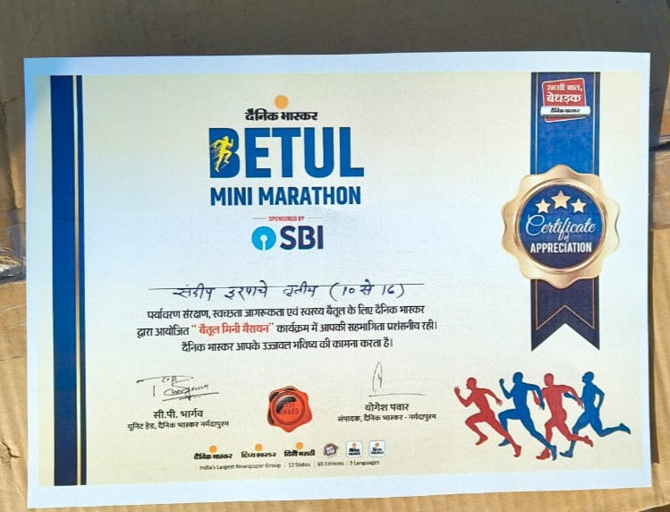 पूर्व सैनिक संतोष उइके द्वारा घोड़ाडोंगरी में संचालित पेरा इंग्लिश फिजिकल ट्रेनिंग इंस्टीट्यूट से बैतूल जिले में अयोजित दैनिक भास्कर मिनी मैराथन में भाग ले कर जिले के युवा वर्ग में तृतीय स्थान बनाया।