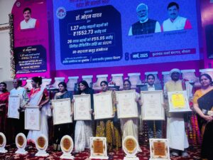 आज दिनांक 8 मार्च 2025 को अंर्तराष्ट्रीय महिला दिवस के अवसर पर महिला एवं बाल विकास विभाग मध्यप्रदेश द्वारा कुशाभाऊ ठाकरे सभागार , भोपाल में श्री मोहन यादव माननीय मुख्यमंत्री जी मध्यप्रदेश शासन की अध्यक्षता में आयोजित कार्यक्रम में ग्राम भारती महिला मंडल, बैतूल की अध्यक्ष *”श्रीमती भारती अग्रवाल जी”* को राज्य स्तरीय *”राजमाता विजयाराजे सिंधिया समाज सेवा पुरस्कार”* से सम्मानित किया गया। श्रीमती भारती अग्रवाल विगत 40 वर्ष से बैतूल जिले के जनजातीय क्षेत्रों में महिला जागरूकता, अधिकार, समानता, शिक्षा एवं रोजगार के विभिन्न आयामों पर कार्य कर रही है।