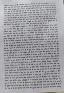 मृतक रविन्द्र देशमुख ने 6 पेज का सुसाइट नोट लिख सुसाइट किया आत्म हत्या के लिए प्रेरित हुआ व्यक्ती छः पेज का सोसाइट नोट लिख सोसाइट नोट में नाम मोबाइल नंबर प्रतिष्ठान पते सब का उल्लेख कर बिना शाब्दिक त्रुटियों के सोसाइट नोट लिखना सम्भव नही है क्या कोई मृतक को सोसाइट नोट लिखने के लिए प्रेरित कर रहा था काल डिटेल की जाँच होनी चाहिये एव सुसाइट नोट को किन लोगों ने वायरल किया मृतक रविन्द्र देशमुख द्वारा आत्म हत्या के पूर्व कभी भी मेरे खिलाफ पुलीस में कोई शिकायत नही की फीर भी उनके परिवार को मेरे खिलाफ प्रमुख साजिशकर्ता बताकर पेश किया गया जबकी मै आज तक उनकी धर्मपत्नी से नही मिला उनके घर नही गया बार बार उनकी धर्म पत्नी को मेरे खिलाफ आगे करके शिकायत व मिडिया मे बयान दिलवाया जा रहा है जबकी मुझे सर्वोच्च न्यालय ने जमानत दी मै कही कोई स्टेटमेंट नही दे रहा फीर भी मेरी बार बार शिकायत कुछ साजिशकर्ता करवा रहे है! मुझे न्याय पालिका पर भरोसा है पुलिस ने मुझे आरोपी बनाया है कोर्ट ने दोषी साबित नही किया लेकिन कुछ लोग मुजरीम की तरह पेश कर रहे है जबकी जिले मे कई जनप्रतिनिधी व प्रतिष्ठित लोगों पर हत्या बलवा का केस चल रहा है उनके साथ भी ऐेसा व्यवहार नही