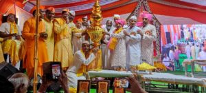 शाहपुर: सकल तारण तरण जैन श्री जिनवाणी जी अस्थाप कलशरोहण वेदी प्रतिष्ठा महोत्सव में रविवार को विशाल शोभायात्रा निकाली गई शोभा यात्रा नगर के प्रमुख मार्गो से होते हुए आयोजन स्थल से जैन चैत्यालय पहुंची। नगर में सकल जैन समाज द्वारा बाल ब्रह्मचारी पूज्य श्री वसंत महाराज जी के सानिध्य में आयोजित वेदी प्रतिष्ठा महोत्सव के तहत कलश की नीलामी की गई। मंदिर के शिखर कलश की नीलामी 12 लाख 51151 रुपए में की गई जिसे सिंघई परिवार के नरेंद्र कुमार जैन श्रीमंत निर्मल कुमार राहुल कुमार सिरोंज कैलाश चंद्र अमरवाड़ा सिंघई बृजेश कुमार जैन एवं उनके परिवार द्वारा बोली लगाकर नीलामी में ली गई।मंदिर की पताका 751000 में नीलाम की गई। जिसे अरविंद कुमार देवेंद्र कुमार दीपक कुमार जैन घोड़ा डोंगरी के परिवार द्वारा ली गई।इसके अलावा 24 कलश की नीलामी की गई। शनिवार शाम की पात्र भावना श्रीमती रजनी जैन एवं उनके परिवार द्वारा की गई वहीं रविवार को दोपहर की पात्र भावना सिंघई नरेंद्र कुमार जैन एवं शाम की पात्र भावना अभय आलोक जैन के द्वारा आयोजित की गई। वेदी प्रतिष्ठा महोत्सव समिति अध्यक्ष अनिल जैन ने बताया कि श्री जिनवाणी जी अस्थाप कलशरोहण वेदी प्रतिष्ठा महोत्सव मे स्वजातीय बंधुओं द्वारा बढ़-चढ़कर हिस्सा लिया जा रहा है। प्रवचन, पूजा, भक्ति, भजन संध्या और रात्रि कालीन जैन धार्मिक सांस्कृतिक कार्यक्रम की प्रस्तुति दी गई। बच्चों द्वारा सांस्कृतिक कार्यक्रमों की रंगारंग प्रस्तुति दी गई। कार्यक्रम में सभी जैन समुदाय के साथ-साथ नगर के सभी नागरिकों का सहयोग मिल रहा है।सदस्यों के लिए पुण्य अर्जित करने का एक उत्कृष्ट अवसर है।