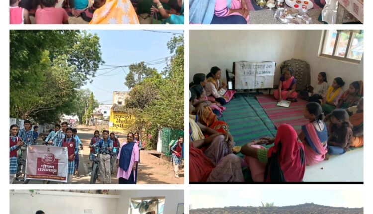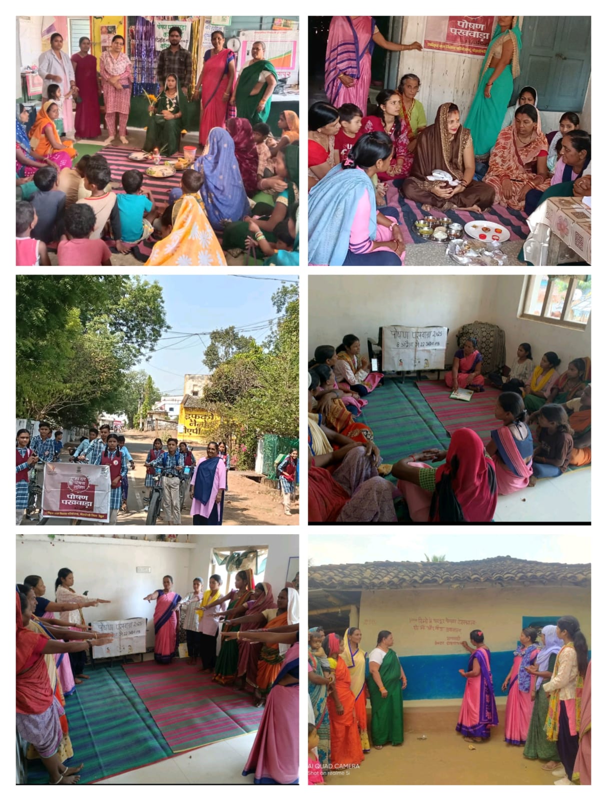 बाल विकास परियोजना घोड़ाडोंगरी के सेक्टर सेक्टर घोड़ाडोंगरी के केंद्रों में पर्यवेक्षक अनामिका छारी द्वारा परियोजना अधिकारी श्रीमती शशि प्रभा इक्का के मार्गदर्शन में पोषण पखवाड़ा कार्यक्रम का आयोजन किया जा रहा है । पर्यवेक्षक अनामिका छारी द्वारा उपस्थित महिलाओं को जानकारी देते हुए बताया गया कि भारत सरकार द्वारा वर्ष 2025 में सातवें पोषण पखवाड़ा कार्यक्रम का 8 अप्रैल 2025 से 22 अप्रैल 2025 तक मनाया जाएगा। इस बार निम्नानुसार चार थीम पर आधारित गतिविधियों पर कार्यक्रमों का आयोजन किया जा रहा है जिसमें जीवन के प्रथम 1000 दिवस केंद्रित गतिविधियां, पोषण ट्रैकर के लाभार्थी मॉड्यूल को लोकप्रिय बनाने हेतु व्यापक प्रचार , प्रसार सी सेम मॉड्यूल के माध्यम से कुपोषण का प्रबंधन, बच्चों में मोटापे को दूर करने के लिए स्वस्थ जीवन शैली को अपने पर बल। आंगनबाड़ी केंद्र बसपुर में स्वास्थ्य पोषण एवं स्वच्छता दिवस पर मंगल दिवस का आयोजन किया गया और श्रीमती कृष्णा विकास सूर्यवंशी की गोद भराई की गई उपस्थित महिलाओं को पर्यवेक्षक अनामिका छारी एवं म श्रीमती चंद्रकला सोनी द्वारा विस्तार से जीवन के 1000 दिवस के बारे में समझाया गया गर्भावस्था से लेकर बच्चों के जन्म के दो वर्ष तक विशेष देखभाल केवल स्थान पान ऊपरी आहार के बारे में जानकारी दी गई रैली निकालकर समुदाय को जागरूक किया गया यह आयोजन सेक्टर के सभी सभी केन्द्रों पर किए जा रहे हैं इस अवसर इस अवसर पर स्वास्थ्य विभाग से ANM श्रीमति चंद्रकला सोनी एवं CHO प्रिया आशा कार्यकर्ता वाली आंगनबाड़ी कार्यकर्ताओं रूप ही ने सुनीता कंचन लीला मीणा सहायिका और समुदाय की समस्त महिलाएं उपस्थित रही