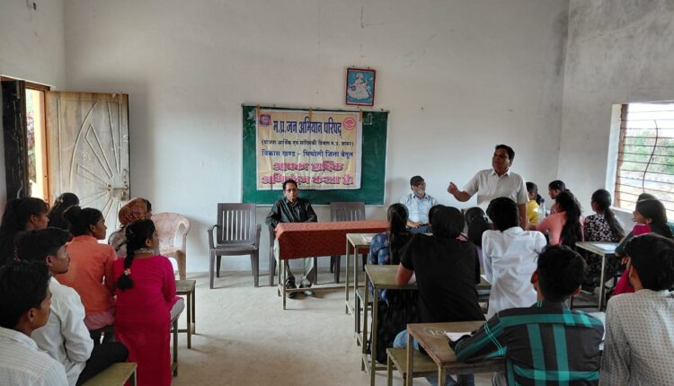*जेएच कॉलेज बैतूल के प्राध्यापक एवं राष्ट्रीय सेवा योजना के जिला संगठक प्रोफेसर सुखदेव डोंगरे के मुख्य आतिथ्य एवं सेवानिवृत्त प्राचार्य एसआर कापसे की विशेष उपस्थिति में जन अभियान परिषद द्वारा संचालित मुख्यमंत्री सामुदायिक नेतृत्व क्षमता विकास कार्यक्रम के परामर्शदाता जितेन्द्र निगम के मार्गदर्शन में यह संगोष्ठी आयोजित की गई. इस संगोष्ठी में बड़ी संख्या में युवाओं ने भाग लिया.*