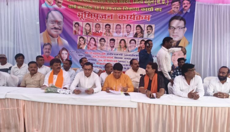 सारनी। नगर पालिका परिषद सारनी में लगभग 6 करोड़ के विकास एवं निर्माण कार्यों का भूमि पूजन आमला सारनी विधायक डॉ योगेश पंडाग्रे द्वारा संपन्न हुए।