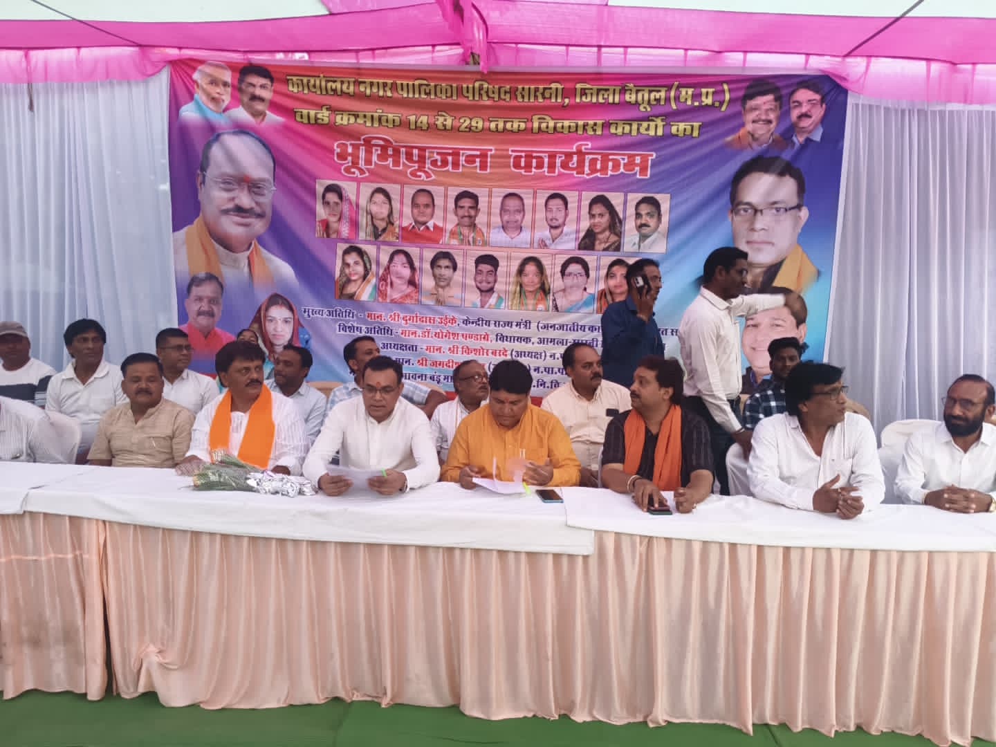 वार्ड क्रमांक 1 से 36 तक सभी वार्डो में विभिन्न निर्माण एवं विकास कार्य पेवर ब्लॉक फिक्सिंग, सी सी रोड रिनिवल कोट, आर सीसी नाली, यू शेप नाली, संस्कृति मंच,मंगल भवन , मरम्मत कार्य, बाउंड्री वाल निर्माण, सार्वजनिक शौचालय, बीटी रोड रिनिवल कोट,नाला निर्माण, आदि कार्यों का भूमि पूजन शोभापुर वार्ड क्रमांक 30 से 36 में (154.75लाख ) के , वार्ड क्रमांक 1 से 13 सारनी क्षेत्र में(102.52 लाख),वार्ड क्रमांक 14 से 29 पाथाखेड़ा क्षेत्र में (390.83लाख )के विकास एवं निर्माण कार्यों का भूमि पूजन अध्यक्ष किशोर बरदे, उपाध्यक्ष जगदीश पवार, विधायक प्रतिनिधि सुधा चंद्रा, पार्षदगणों मुख्य नगर पालिका अधिकारी सीके मेश्राम की उपस्थिति में हुआ। इस अवसर पर विधायक डॉ पंडाग्रे ने कहा कि सारनी के विकास की एक पूरी कड़ी तैयार की गई है। 660 मेगावाट की इकाई के टेंडर हो चुके हैं। वहीं सीमेंट फैक्ट्री, लघु उद्योगों का विकास का कार्य भी अंतिम चरण में है। विधायक ने कहा कि नई इकाई को कोल लिंकेज देने के लिए नई कोयला खदाने भी शुरू हो रही हैं। इससे सारनी का संपूर्ण विकास होगा। इस अवसर पर