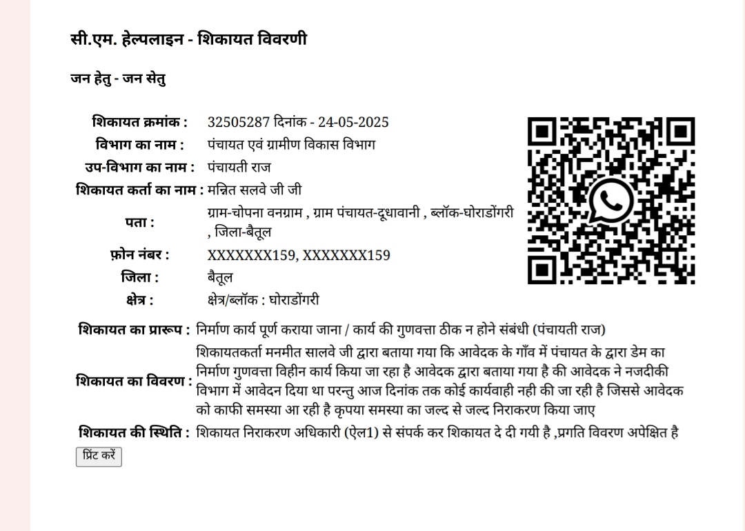 घोड़ाडोंगरी जनपद में घटिया कार्य : मुख्यमंत्री से की शिकायत