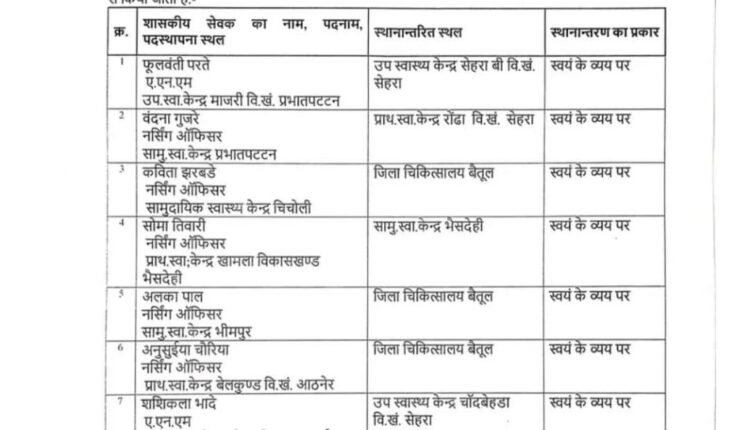 स्वास्थ्य विभाग के ट्रांसफर लिस्ट