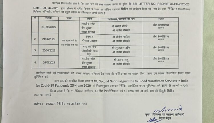 इसी दिशा में बुधवार को घोड़ाडोंगरी में सारणी ,पाथाखेड़ा , घोड़ाडोंगरी की शाखा द्वारा संयुक्त रूप से स्वास्थ विभाग के सहयोग से रक्त दान शिविर का आयोजन किया गया है जिसमें सभी क्षेत्र वासियों से विन्रम अनुरोध है रक्त दान शिविर में शामिल होकर अपनी भागीदारी अवश्य करे