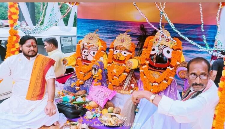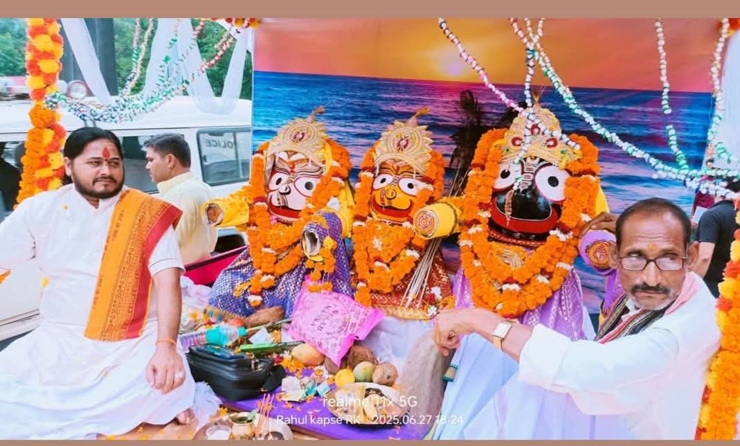 प्रति वर्ष अनुसार इस वर्ष में भी महाप्रभु श्री भगवान जगन्नाथ की रथ यात्रा 27 जून 2025 धूमधाम से नगर भ्रमण पर निकली । उत्कल घासी समाज उत्थान समिति सारनी जिला बैतूल के समाज के संस्थापक सदस्य रंजीत डोंगरे युवा अध्यक्ष अमित सिंदूर सचिव कीर्ति नायक, सह सचिव बिरंची महानंद ,उपाध्यक्ष रवि सिंदूर ने बताया कि भगवान जगन्नाथ महाप्रभु जी की रथयात्रा तिथि अनुसार इस वर्ष 27 जून 2025 को भगवान जगन्नाथ महाप्रभु जी रथयात्रा का महापर्व उत्सव जिसे देखते हुये उत्कल घासी समाज उत्थान समिति के सदस्यों जगन्नाथ मंदिर सारनी ने दो माह से तैयारी करना प्रारंभ किया ।जिसमे उत्कल घासी समाज के सभी पदाधिकारियों सदस्यों ने चर्चा परिचर्चा विचार विमर्श करते हुए सर्वसम्मति से निर्णय लिया किया गत वर्ष की भांति इस वर्ष भी भगवान जगन्नाथ महाप्रभु जी की रथयात्रा बड़े ही धूमधाम से हिंदू रीति रिवाजों विधि विधान परंपराओ पूजन हवन स्नान नैवेद्य भोग प्रसाद भंडारा इत्यादि भोग पूजन करने के पश्चात बाद भगवान जगन्नाथ महाप्रभु जी