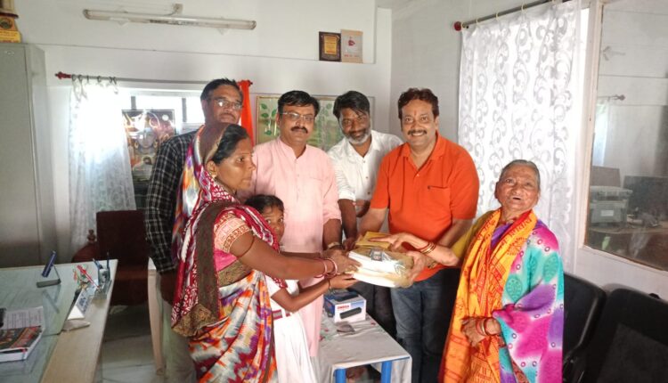 श्री नागेंद्र जी निगम श्री रेवा शंकर मगरदे द्वारा साक्षी वोसम के परिवार की आर्थिक स्थिति गरीबी स्थिति को देखते हुए बच्चों की पुस्तक कॉपी किताब एवं स्कूल की फीस श्रीमती इंदु बाईं अमर कर द्वारा जमा की गई