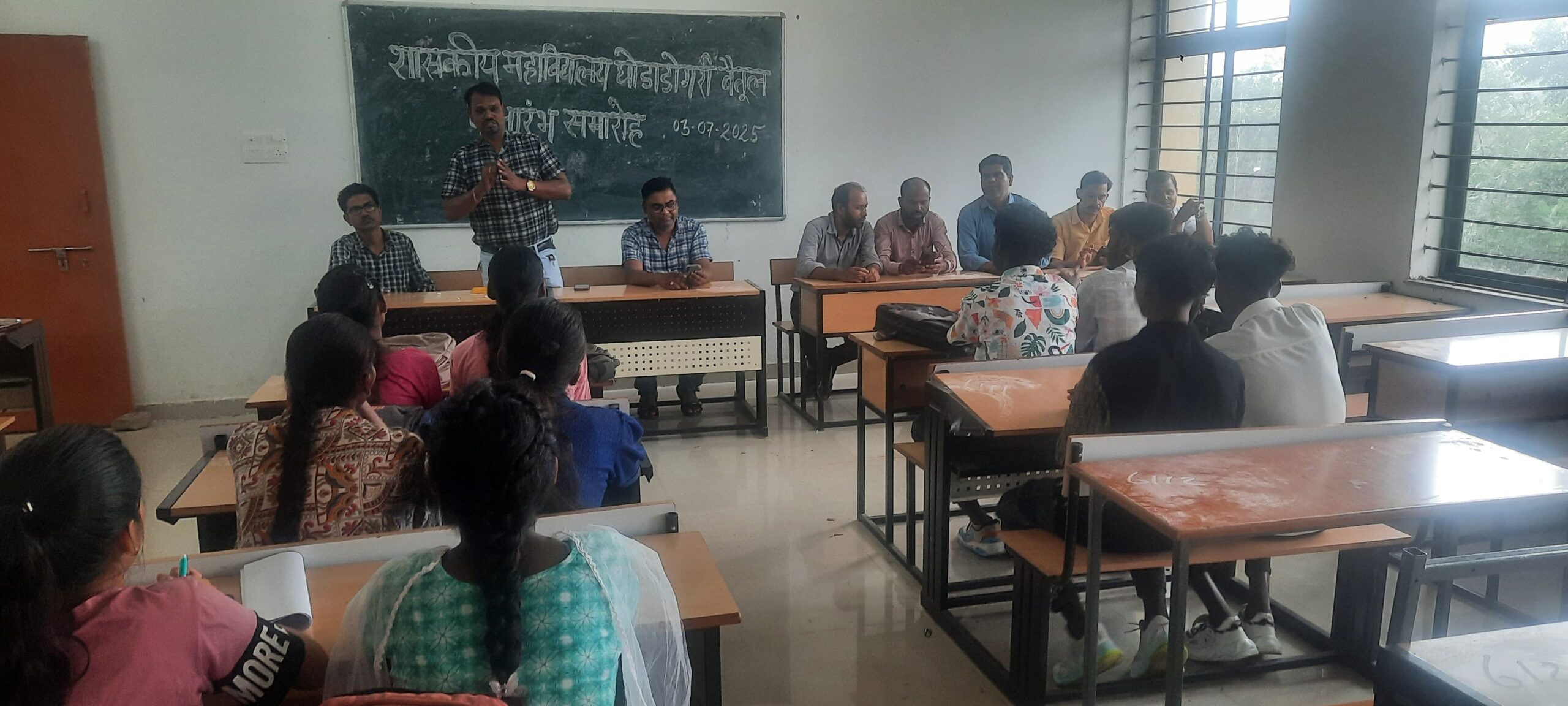 शासन के आदेश अनुसार 1 जुलाई से 3 जुलाई तक चलने वाले तीन दिवसीय दीक्षारंभ समारोह का शुभारंभ शासकीय महाविद्यालय घोड़ाडोगरी के प्राचार्य डॉ देवी सिंह सिसोदिया की अध्यक्षता में संपन्न हुआ पहले दिन नवप्रवेशित छात्र-छात्राओं का सीनियर छात्र-छात्राओं द्वारा तिलक लगाकर सम्मान किया गया। डॉ. अजय कुमार चौबे ने कॉलेज में दी जाने वाली सुविधाओं और शासन की योजनाओं के बारे में बताया, प्रथम दिवस के सत्र में प्राचार्य डॉ. देवी सिंह सिसोदिया ने बताया कि महाविद्यालय मे अच्छी शिक्षण व्यवस्था के साथ खेलकूद तथा राष्ट्रीय सेवा योजना के माध्यम से छात्र अपने कॅरियर बना सकते हैं।डॉ देवकृष्ण मगरदे ने राष्ट्रीय शिक्षा नीति के विषय में छात्र-छात्राओं को विस्तृत जानकारी दी डॉ. साहेबराव झरबडे ने समस्त प्रकार की दी जाने वाले छात्रवृत्ति के विषय में छात्रों को अवगत कराया कार्यक्रम के दूसरे दिन प्रो हेमंत कुमार निरापूरे ने छात्रों को महाविद्यालय की मूलभूत सुविधाओं तथा कोर्स के बारे में विस्तृत जानकारी दी डॉ. यासमीन जिया ने पुस्तकालय के बारे में बच्चों को अवगत कराया साथ ही ई-ग्रंथालय के तमाम बारिकियों को बताया डॉ. नंदकिशोर पवार ने खेल विधाओं की विस्तृत चर्चा की प्रवेश प्रभारी प्रोफेसर राकेश सिसोदिया के निर्देशन में कार्यक्रम संपन्न कराया गया इस अवसर पर मुख्य अतिथि के रूप में जन अभियान परिषद के ब्लॉक समन्वयक श्री संतोष राजपूत ने छात्र-छात्राओं के बेहतर भविष्य के लिए कुछ जरूरी टिप्स दिये ।