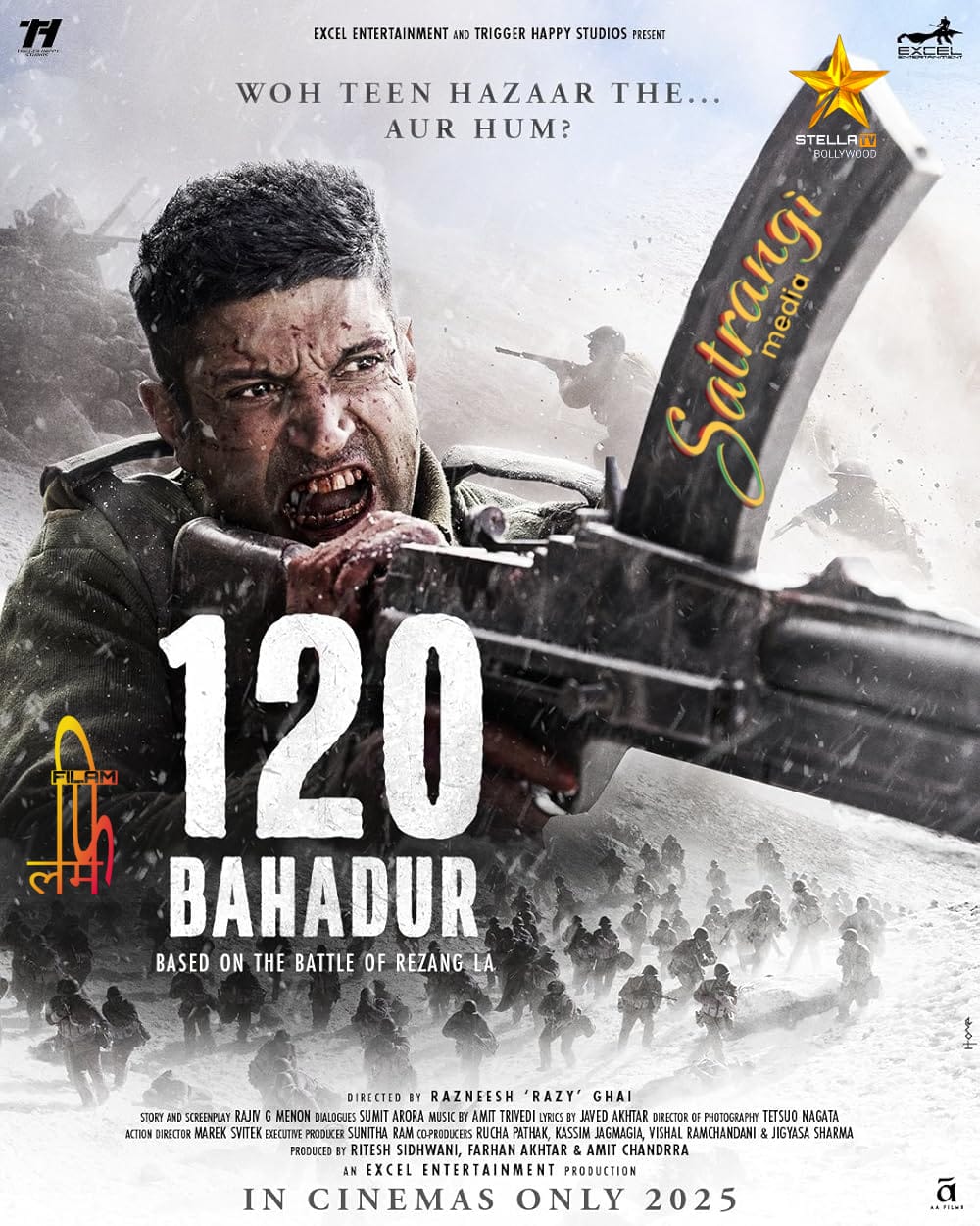 120 बहादुर का निर्देशन रजनीश ‘रेज़ी’ घई ने किया है और इसे रितेश सिधवानी, फरहान अख्तर (एक्सेल एंटरटेनमेंट) और अमित चंद्रा (ट्रिगर हैपी स्टूडियोज) ने मिलकर प्रोड्यूस किया है। यह फिल्म एक्सेल एंटरटेनमेंट के बैनर तले बनी है। फिल्म 21 नवंबर 2025 को सिनेमाघरों में रिलीज होगी!