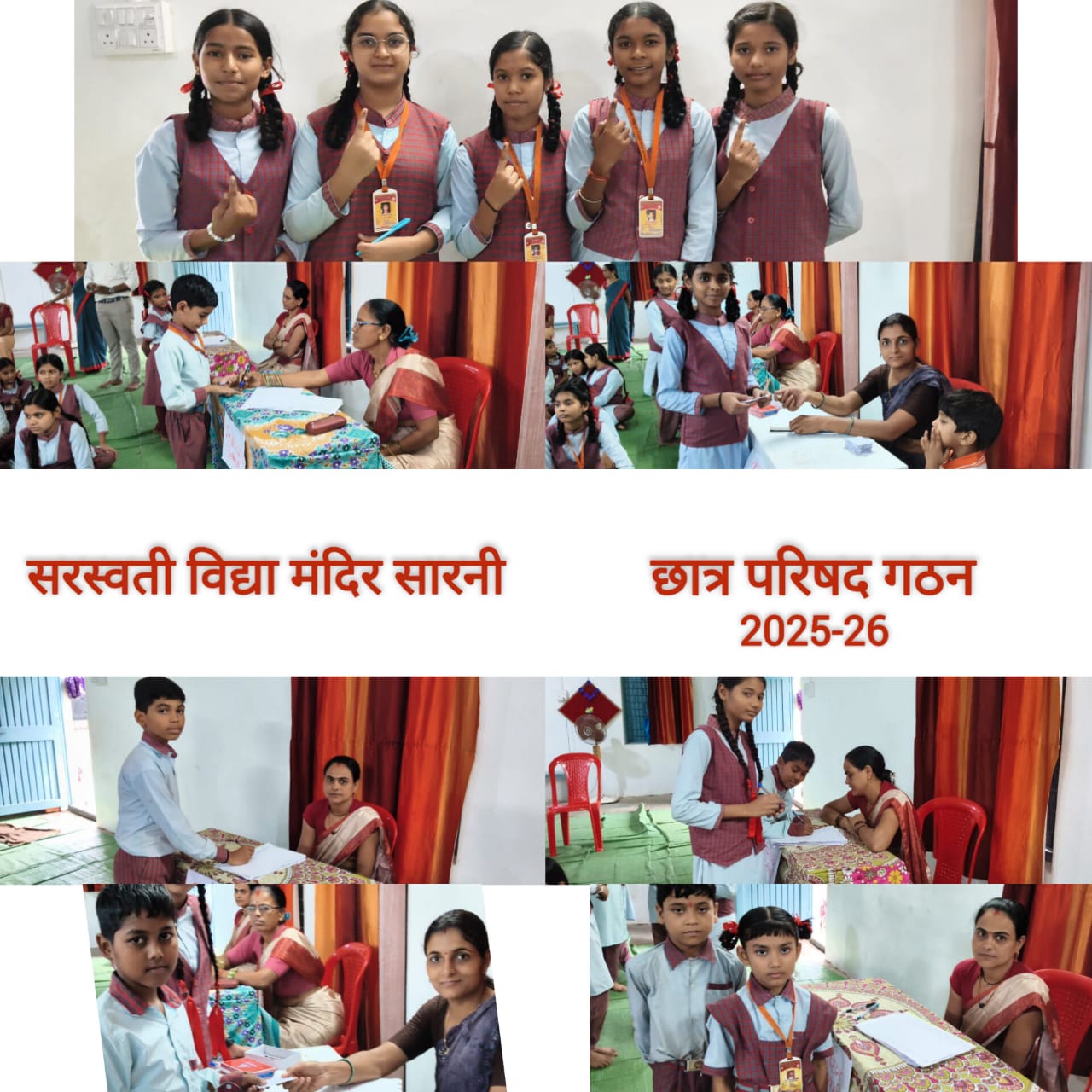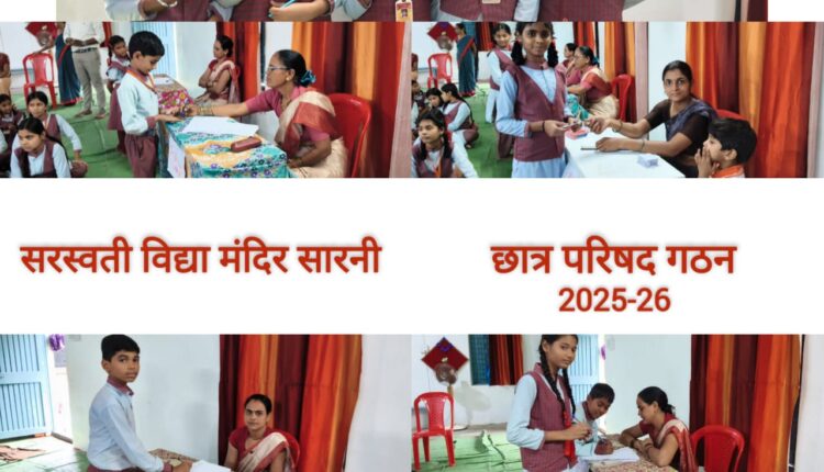 सारनी। सरस्वती विद्या मंदिर सारणी में विद्यालय के भैया बहनों द्वारा *छात्र परिषद* का गठन किया गया । भैया – बहनों द्वारा अपनी कक्षा का मॉनिटर नायक का चयन किया फिर सभी नायकों ने मिलकर अध्यक्ष, उपाध्यक्ष, सचिव, सहसचिव, कोषाध्यक्ष, सेनापति,