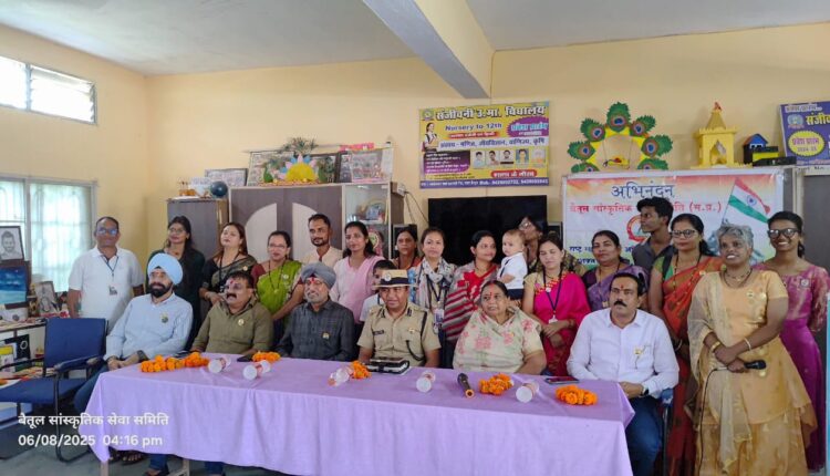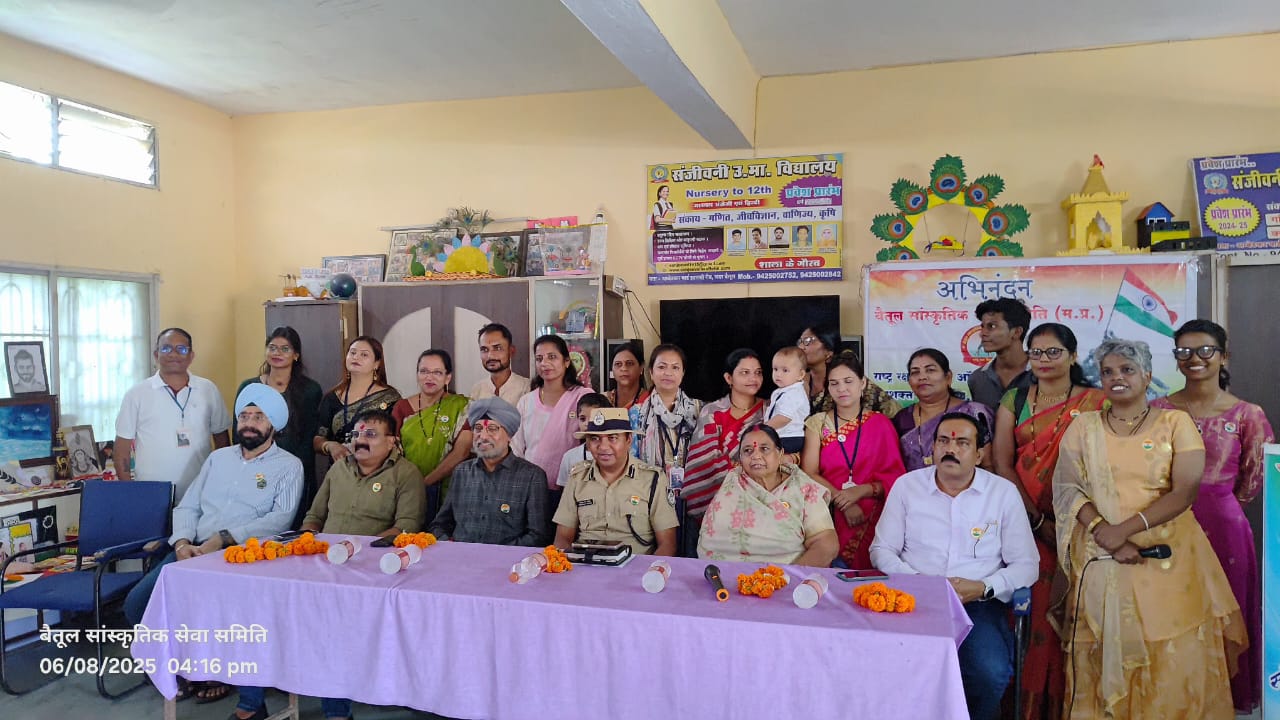 बैतूल। मैं बैतूल की धरती को नमन करना चाहता हूं..31 वर्ष की सेवा के दौरान मुझे ऐसा कोई कार्यक्रम देखने को नहीं मिला कि बार्डर पर जाकर हमारी बहनें सैनिकों को राखी बांधती है। जो लोग सरहद पर होते है उन्हें किसी चीज की जरुरत नहीं होती उन्हें सिर्फ दुआओं की जरुरत होती है। राष्ट्र रक्षा मिशन प्रत्यक्ष रुप से बार्डर पर जाकर सैनिकों को राखी बांध रहा है, उनकी अच्छाई की कामना करते है। इन्हीं सब कारणों से हमारा देश लगातार युद्ध जीतता है और सैनिक हमारी रक्षा के लिए हमेशा प्रतिबद्ध रहते है। यह बातें जिला पुलिस अधीक्षक निश्चल एन झारिया ने संजीवनी हायर सेकण्डरी स्कूल में आयोजित बैतूल सांस्कृतिक सेवा समिति के राष्ट्र रक्षा मिशन 2025 दल के सरहद जाने से पहले संरक्षक आदित्य बबला शुक्ला नेतृत्व में आयोजित अभिनंदन एवं शुभयात्रा कार्यक्रम में कहीं। इस अवसर विशिष्ट अतिथि पार्वतीबाई बारस्कर, जिला सैनिक अधिकारी कैप्टन सुमीत सिंह, प्राचार्य गजेन्द्र पंवार, आदित्य बबला शुक्ला एवं परमजीत सिंह बग्गा मौजूद थे। कार्यक्रम में नगर के सामाजिक एवं धार्मिक संगठनों द्वारा राखियां, रुमाल एवं अन्य भेंट दी। राष्ट्र रक्षा मिशन 26 वें वर्ष में भारत पाकिस्तान की अंतराष्ट्रीय सीमा सादकी एवं अन्य बीओपी पर पहुंचकर बीएसएफ के सैकड़ो जवानों को रक्षा सूत्र बांधेगे। इस दौरान सरहदी दल को अतिथियों द्वारा आईडी वितरित कर यात्रा के लिए शुभकामनाएं प्रेषित की। स्कूल के बच्चों द्वारा सैनिकों के लिए बनाएं ग्रीटिंग्स और राखियों की प्रदर्शनी भी यहां लगाई गई।