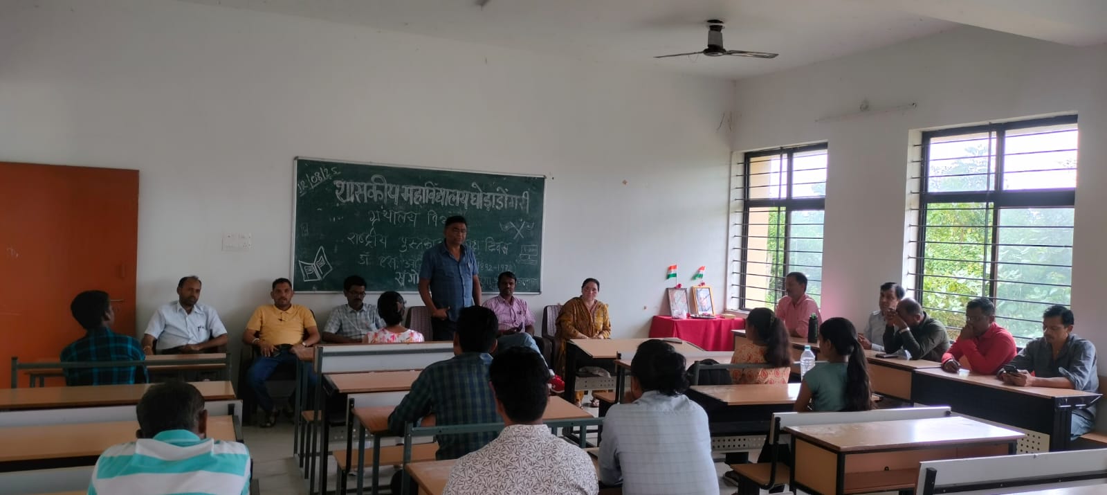 शासकीय महाविद्यालय घोड़ाडोंगरी के पुस्तकालय में पुस्तकालय विज्ञान के पितामह डॉ. एस. आर. रंगनाथन के जन्म दिवस पर राष्ट्रीय पुस्तकालयाध्यक्ष दिवस पर हर घर तिरंगा और पुस्तकालय विषय पर संगोष्ठी एवम पुस्तक प्रदर्शनी का आयोजन किया गया कार्यक्रम का प्रारंभ प्राचार्य डॉ.देवी सिंह सिसोदिया, ग्रंथपाल डॉ. यासमीन जिया एवं स्टाफ द्वारा मां सरस्वती एवं डॉ एस आर रंगनाथन के चित्र पर चित्र पर पुष्प अर्पित कर किया गया