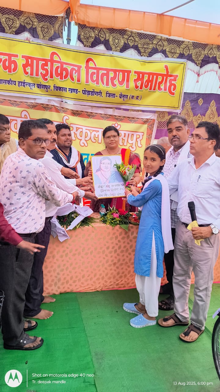 शासन की महत्वाकांक्षी योजना निशुल्क साइकिल वितरण के तहत जिसमें छात्र छात्राएं दूर-दराज से पैदल आते थे उन ग्रामीण बच्चों के लिए किसी वरदान से काम नहीं है जिसके तहत कक्षा छठवीं की 260एवं कक्षा नौवीं 97 कुल 123 साइकिल वितरित की जो नन्हे मुन्ने अपने घर से पैदल विद्यालय तक पहुंचाने थे। अब बड़ी सुगमता के साथ विद्यालय पहुंचेंगे बारिश की रिमझिम फ़ुआरो के बीच घोड़ाडोंगरी विधानसभा के विधायक माननीय गंगा सज्जन सिंह उईके जी का स्वागत शासकीय हाई स्कूल एवं माध्यमिक विद्यालय बांसपुर में किया गया साइकिल वितरण समारोह में ग्राम बांसपुर पहुंची तब विद्यालय के समस्त विद्यार्थियों द्वारा उनका जोरदार करतल ध्वनि से स्वागत किया गया। कार्यक्रम का शुभारंभ दीप प्रज्वलन एवं साइकिल पूजन के साथ किया गया इसी कड़ी में विधायक महोदय द्वारा एक पेड़ मां के नाम के तहत विद्यालय प्रांगण में वृक्षारोपण किया गया ।
