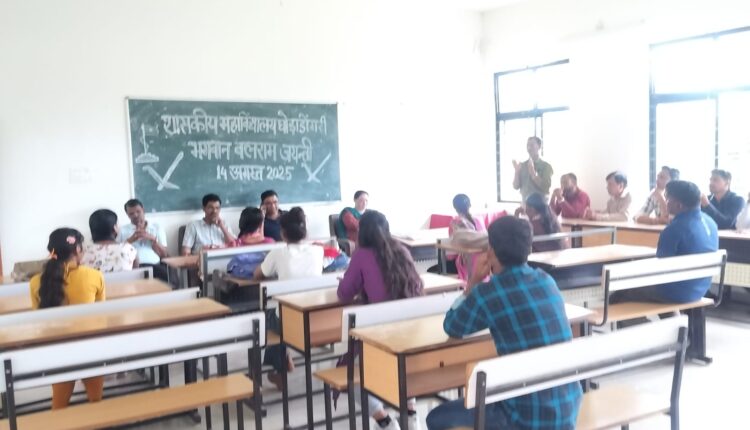 शासकीय महाविद्यालय घोड़ाडोंगरी में मध्य प्रदेश शासन एवं उच्च शिक्षा विभाग के निर्देशानुसार आज दिनांक 14 अगस्त 2025 को बलराम जयंती के अवसर पर कार्यक्रम का आयोजन किया गया भारतीय ज्ञान परंपरा के तत्वावधान में आयोजित इस कार्यक्रम में महाविद्यालय के प्राचार्य डॉ. देवी सिंह सिसोदिया ने भगवान बलराम एवं श्री कृष्ण के प्रसंग एवं उनके अवदान एवं लोक कल्याणकारी जीवन गाथा से संबंधित कई सारी रोचक जानकारियों से छात्र-छात्राओं को अवगत कराया।कार्यक्रम में स्वामी विवेकानंद कैरियर मार्गदर्शन प्रकोष्ठ के प्रभारी डॉ. साहेबराव झरबडे महाविद्यालय के मीडिया सेल के प्रभारी प्रो.हेमंत कुमार निरापुरे,डॉ.अजाब खातरकर ने भी अपने विचार व्यक्त किया कार्यक्रम का संचालन डॉ अजय कुमार चौबे के द्वारा किया गया एवं आभार प्रदर्शन डॉ. अजाब खातरकर ने व्यक्त किया।