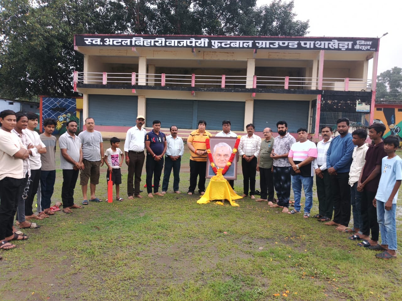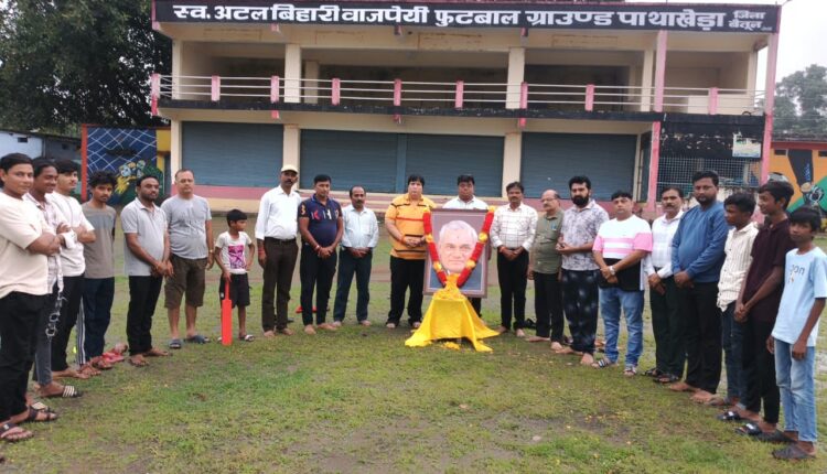 स्व० अटल बिहारी बाजपेई फुटबाल ग्राउण्ड मे खिलाड़ियों ने श्रद्धांजलि अर्पित की मंदिर