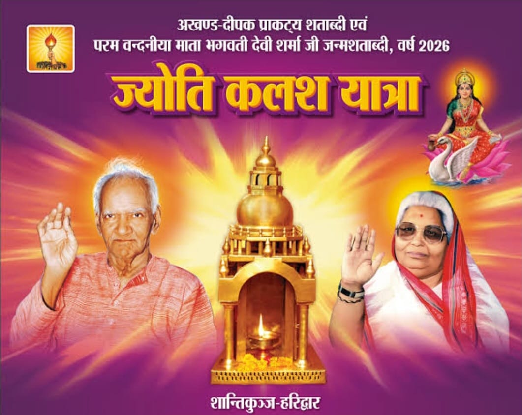 युग परिवर्तन एवं युग निर्माण की बेला में अखिल विश्व गायत्री परिवार शांतिकुंज के मार्गदर्शन में ज्योति कलश यात्रा का परम पूज्य गुरुदेव परम वंदनीय माताजी के संदेशों को लेकर 4 सितंबर प्रातः 9:00 बजे आगमन हो रहा है।
