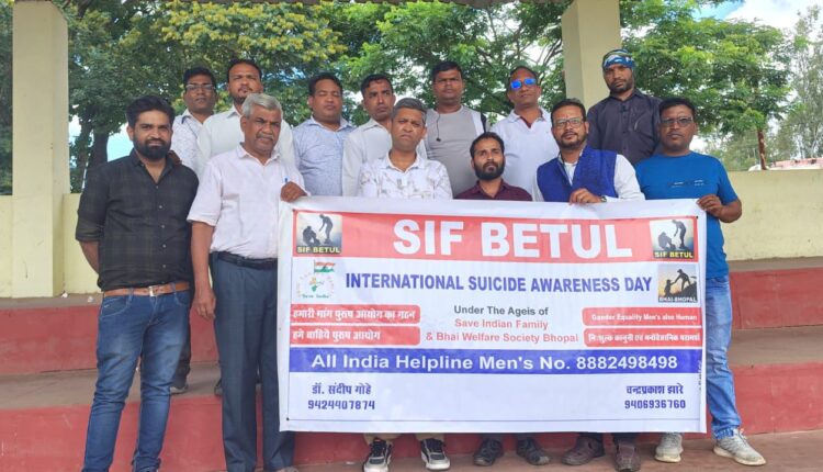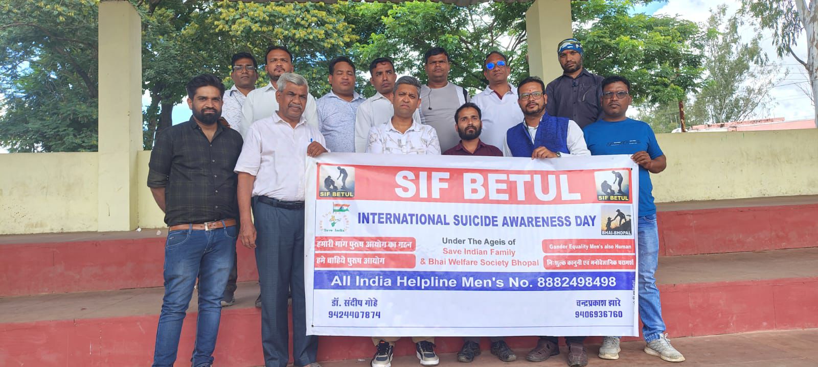 उन्होंने बताया कि एसआईएफ बैतूल पिछले पाँच वर्षों से इस विषय पर लगातार कार्य कर रहा है व ये उनका विश्व आत्महत्या रोकथाम दिवस का दूसरा वर्ष है और पुरुषों के मानसिक स्वास्थ्य तथा झूठे मुकदमों में फंसे पुरुषों को सहायता प्रदान कर रहा है। संस्था द्वारा चलाए गए अभियान एक पेड़ पिता के नाम और एक कुर्सी मर्दों के नाम ने समाज में सकारात्मक संदेश दिया है।