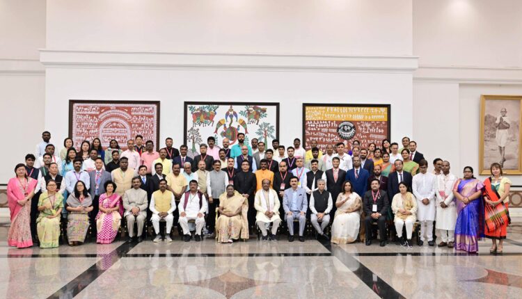 विभिन्न राज्यों का प्रतिनिधित्व करने वाले विविध पृष्ठभूमि के प्रतिष्ठित जनजातीय लोगों के एक समूह ने आज (9 सितंबर, 2025) राष्ट्रपति भवन में भारत की राष्ट्रपति श्रीमती द्रौपदी मुर्मू से मुलाकात की। यह समूह जनजातीय कार्य मंत्रालय के ‘आदि कर्मयोगी अभियान’ के अंतर्गत राष्ट्रपति भवन में था। इस पहल के तहत राष्ट्रपति भवन में जनजातीय नेताओं की बैठक राष्ट्रपति जी की अध्यक्षता में आयोजित की गई