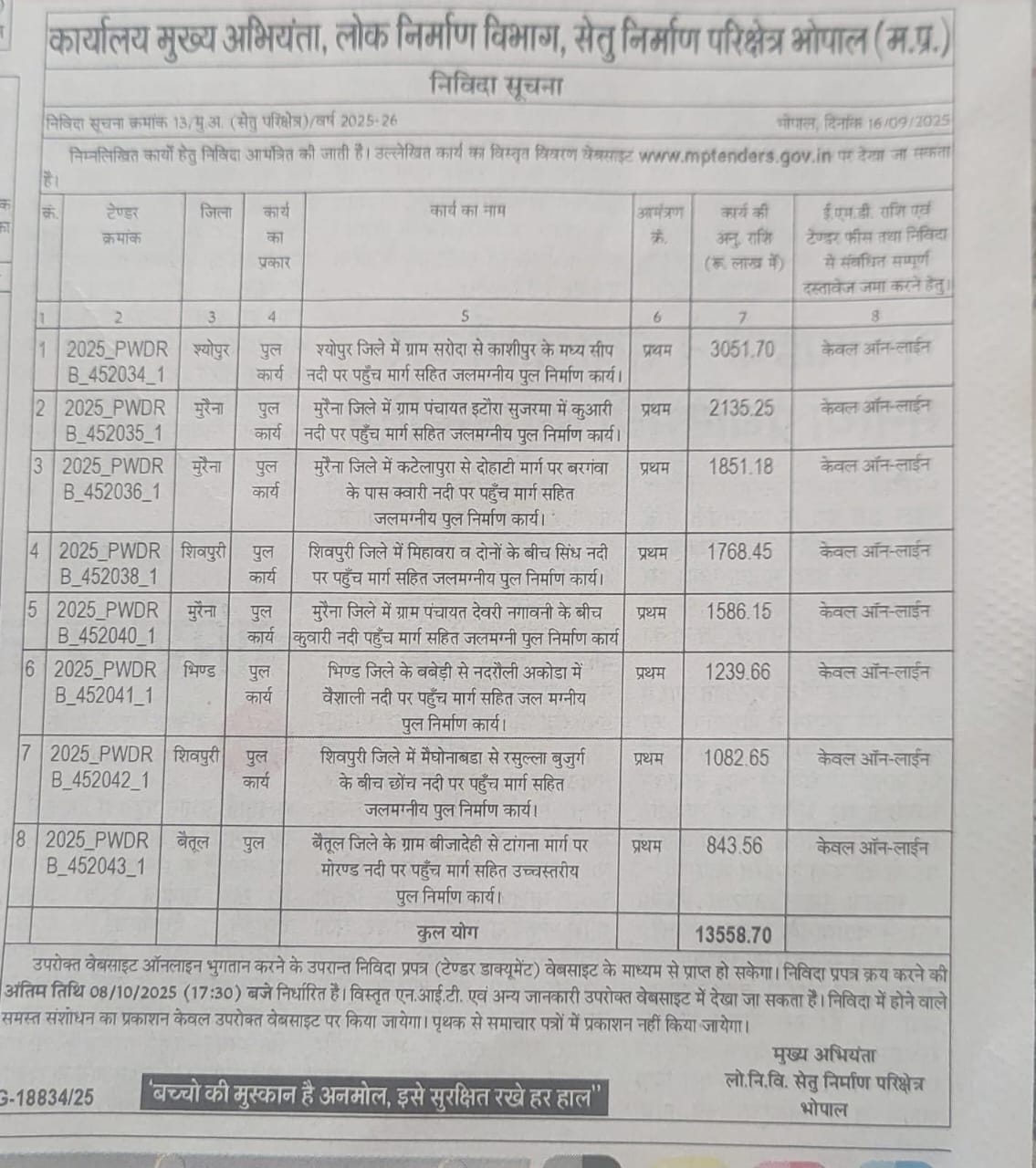 बैतूल जिले की घोड़ाडोंगरी विधानसभा में पुल निर्माण के लिए निविदा आमंत्रित होने पर हार्दिक प्रसन्नता! ग्राम बीजादेही से टांगना मार्ग पर मोर्ण्ड नदी पर उच्चस्तरीय पुल निर्माण से क्षेत्रवासियों को आवागमन में सुविधा होगी। माननीय यशस्वी मुख्यमंत्री डॉ मोहन यादव जी एवं लोक निर्माण मंत्री श्री राकेश सिंह जी का आभार एवं बधाई। संबंधित विभाग को भी बधाई एवं समय पर कार्य पूर्ण होने की शुभकामनाएं।