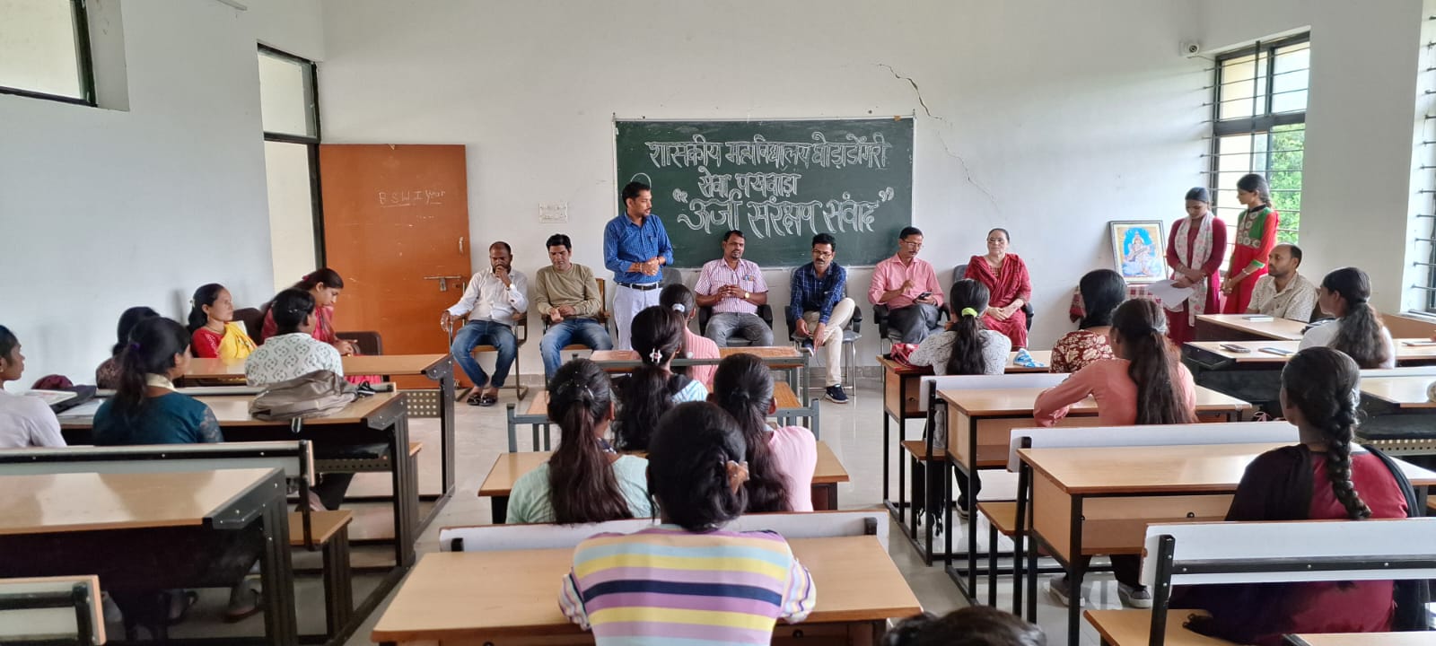 /10/2025 तक सेवा पखवाड़ा का आयोजन किया जाना है इस कार्यक्रम में आज शासकीय महाविद्यालय घोड़ाडोंगरी में ऊर्जा संरक्षण संवाद कार्यक्रम आयोजित किया गया कार्यक्रम की अध्यक्षता कर रहे महाविद्यालय के प्रभारी प्राचार्य डॉक्टर साहब राव झरबडे ने ऊर्जा के परंपरागत एवं और परंपरागत साधनों के बारे में बताया ,कार्यक्रम के नोडल अधिकारी प्रोफेसर राकेश सिसोदिया ने कार्यक्रम रूपरेखा एवं ऊर्जा संरक्षण के बारे में बताया , मीडिया सेल प्रभारी प्रो हेमंत निरापुरे ने ऊर्जा के विभिन्न प्रकारों की विस्तृत जानकारी प्रदान की और छोटी-छोटी सावधानी ,सतर्कता से किस तरह आने वाली पीढ़ी के लिए ऊर्जा का संरक्षण किया जा सकता है, विस्तार से बताया ,