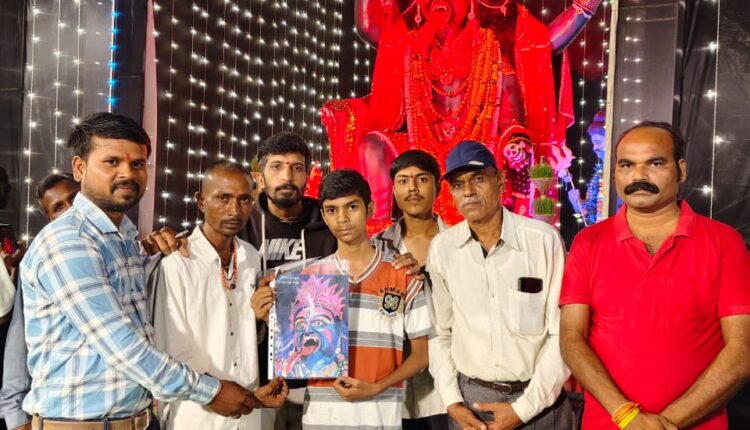 कक्षा 10 वी के छात्र शौर्य नागले के द्वारा बनाई गई मां भद्रकाली की अदभुद पेंटिंग