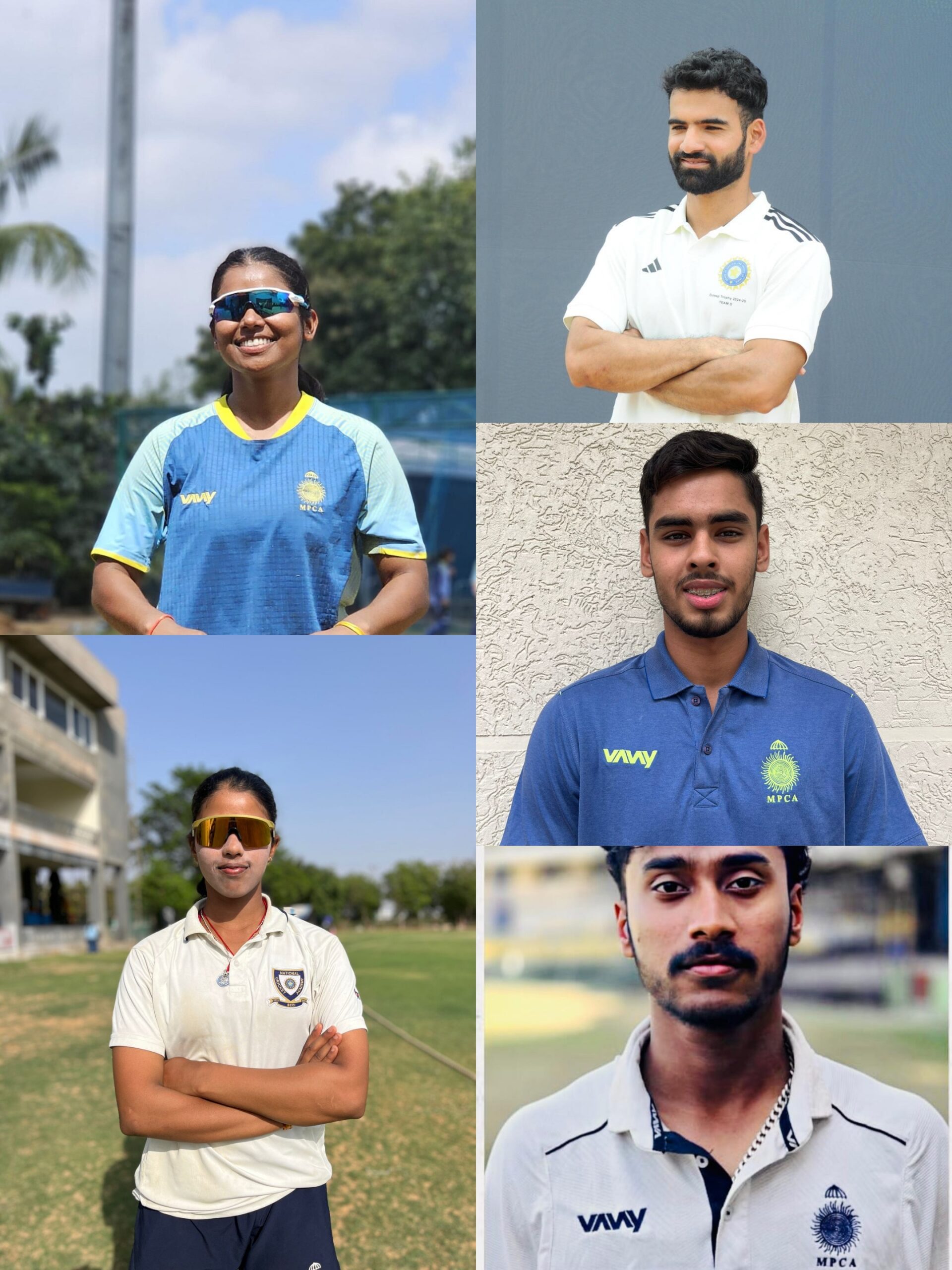 दुबे,कल्याणी जाधव,अखिल यादव और विधान दुबे नर्मदापुरम संभाग की ओर से लगातार बेहतरीन प्रदर्शन किया हैं । अखिल निगोटे यादव को अंडर 23 बीसीसीआई की सी के नायडू ट्रॉफी और विधान दुबे का चयन अंडर 19 टीम में वीनू मांकड़ ट्रॉफी के लिए हुआ है जो पांडिचेरी में आयोजित है।सभी खिलाड़ियों के चयन से नर्मदापुरम संभाग क्रिकेट एसोसिएशन में हर्ष का माहौल है खिलाड़ियों के चयनित होने पर संभाग के अध्यक्ष श्री कपिल फौजदार, चेयरमैन श्री रोहित फौजदार, श्री राकेश फौजदार,श्री राजेश चौरे अध्यक्ष, नर्मदापुरम जिला क्रिकेट संघ, श्री विवेक अग्रवाल अध्यक्ष हरदा जिला क्रिकेट संघ, श्री जगेंद्र सिंह अध्यक्ष बैतूल जिला क्रिकेट संघ,संभाग उपाध्यक्ष श्री योगेश परसाई, श्री प्रदीप सिंह तोमर, श्री