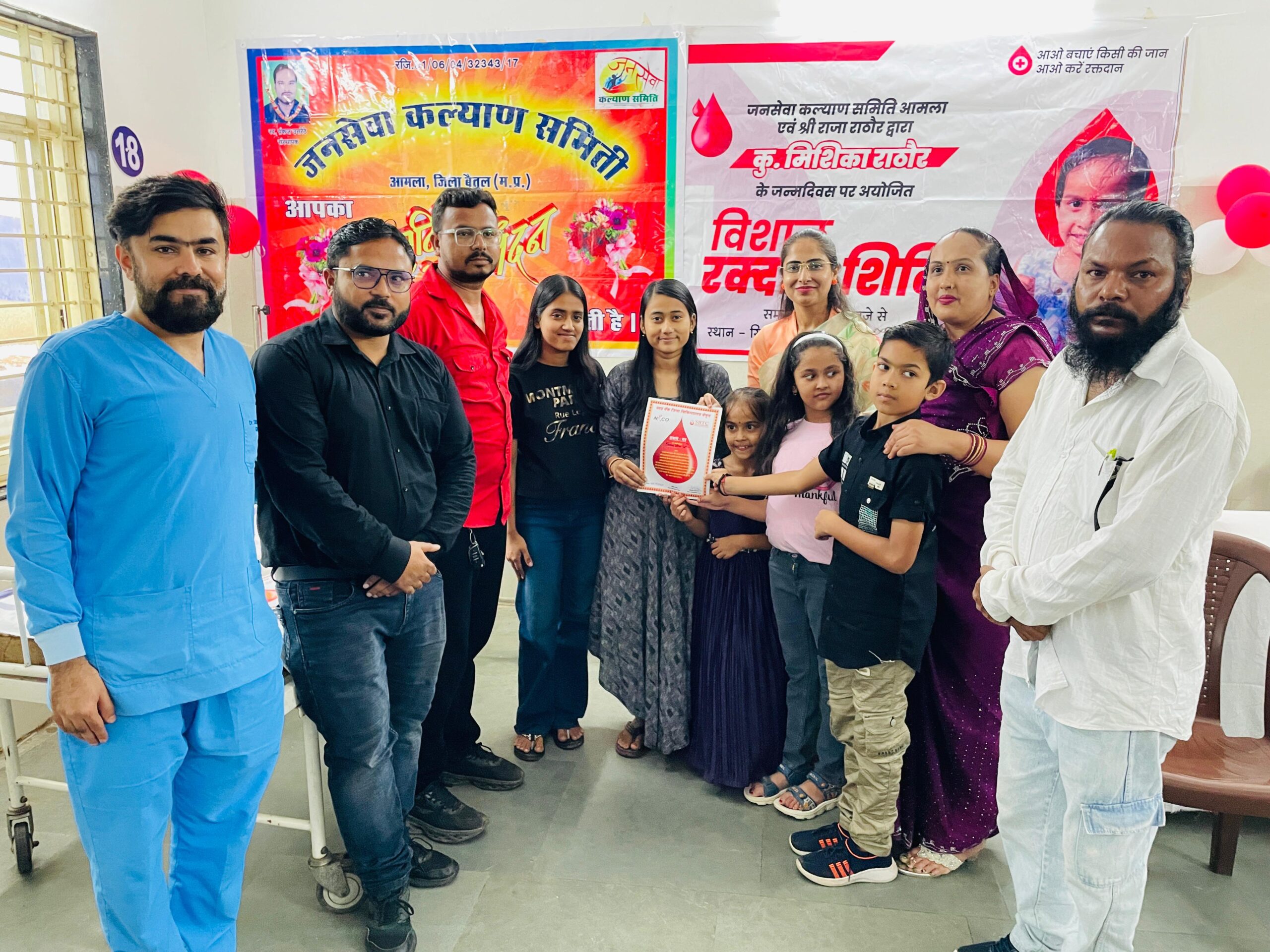 किसी कवि की ये पंक्तियां बेटियों से जुड़ी शुभता को इंगित करती है, और पिता के लिए तो बेटी से जुड़े ये भाव कई गुना बढ़ जाते है, आमला के व्यवसायी व समाजसेवी राजा राठौर भी अपनी बेटी के प्रति स्नेहिल भाव से परिपूर्ण हो प्रतिवर्ष उसके जन्मदिन पर रक्तदान शिविर का आयोजन करते है, इसी क्रम में आज 5 अक्टूबर,दिन रविवार को भी उनके द्वारा बिटिया मिशिका के जन्मदिन पर रक्तदान शिविर का आयोजन किया गया। राजा राठौर एवं जनसेवा कल्याण समिति के संयुक्त तत्वावधान में आयोजित इस शिविर में 71 रक्तदाताओं ने रक्तदान किया।