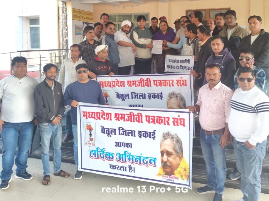 बैतूल/सारनी। मध्यप्रदेश श्रमजीवी पत्रकार संघ जिला इकाई बैतूल ने सोमवार को अपनी छह सूत्रीय मांगों को लेकर मुख्यमंत्री के नाम एक ज्ञापन प्रांताध्यक्ष शलभ भदोरिया जी के निर्देशानुसार जिला अध्यक्ष रंजीत सिह के नेतुत्व मे डिप्टी कलेक्टर तृप्ति पतारिया को सौंपा। मध्यप्रदेश श्रमजीवी पत्रकार संघ